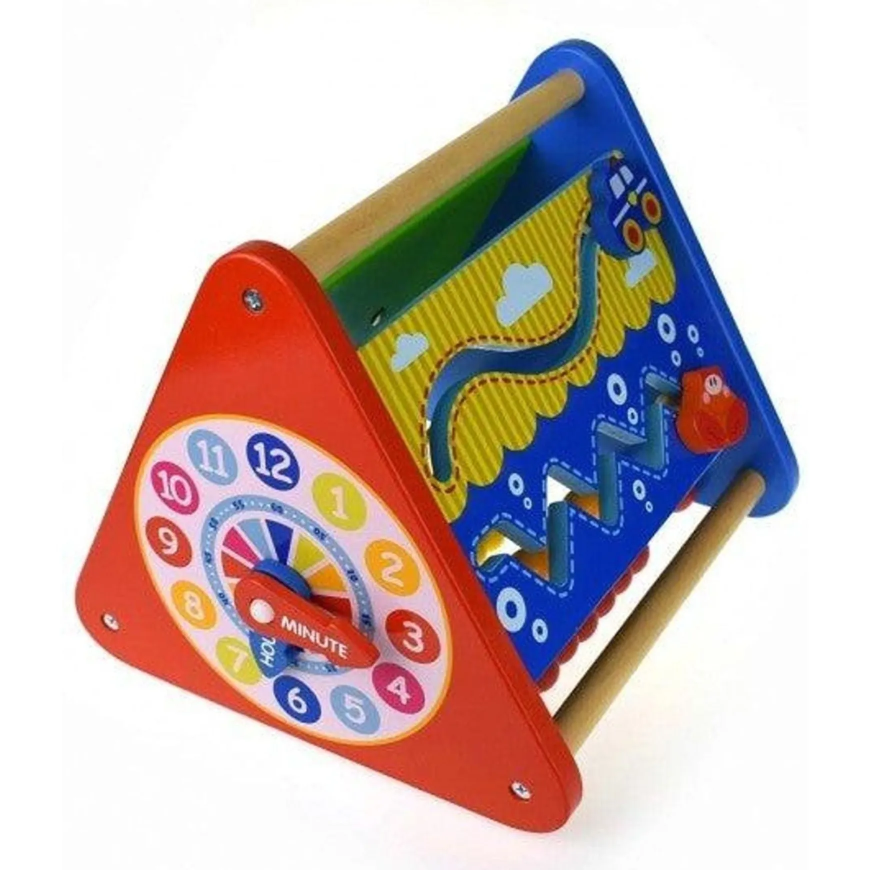 - Features a clock, turning gears, and mazes, helping enhance your child’s fine motor skills