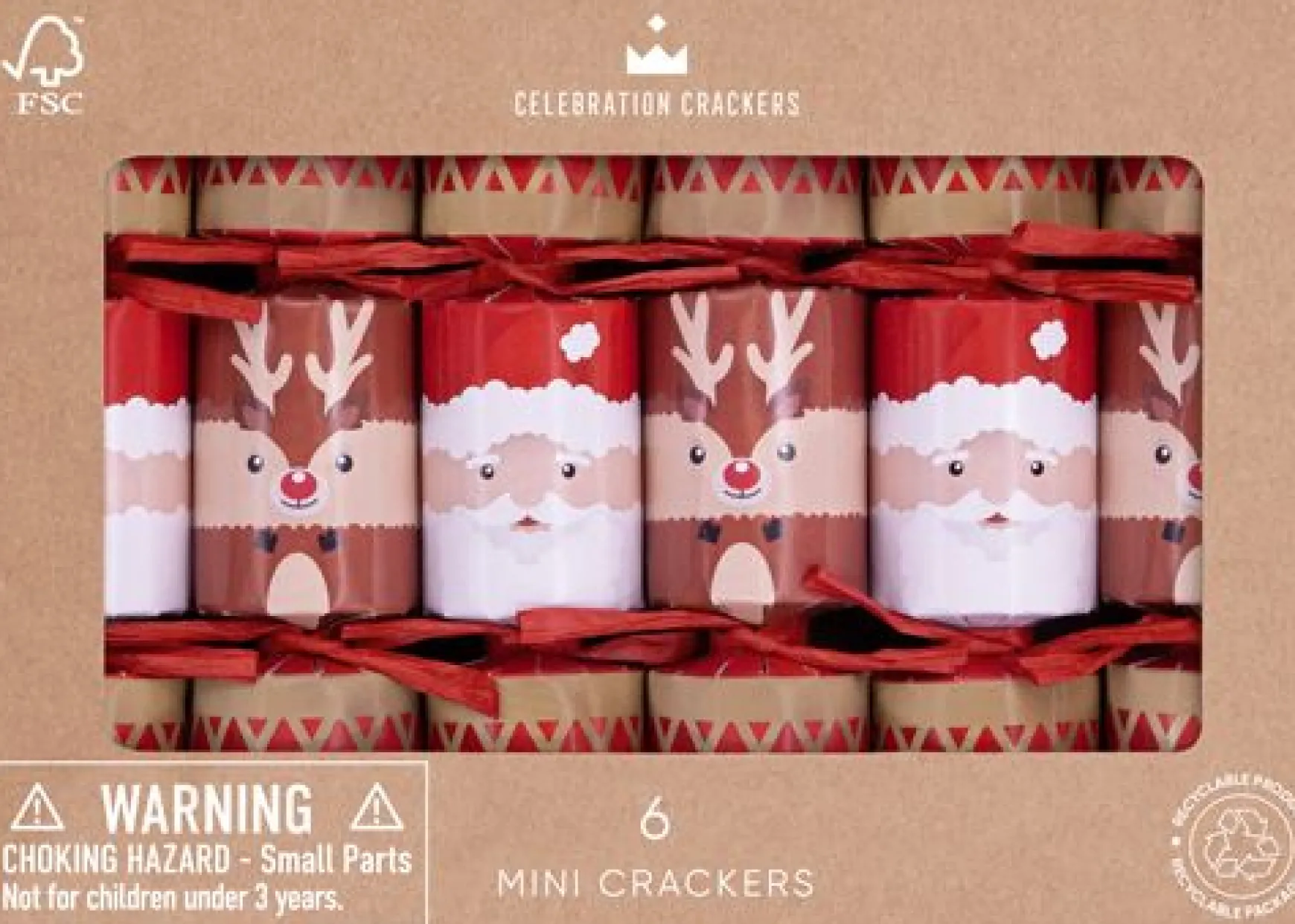 Includes 6 Santa and Reindeer 6 inch Christmas Crackers.