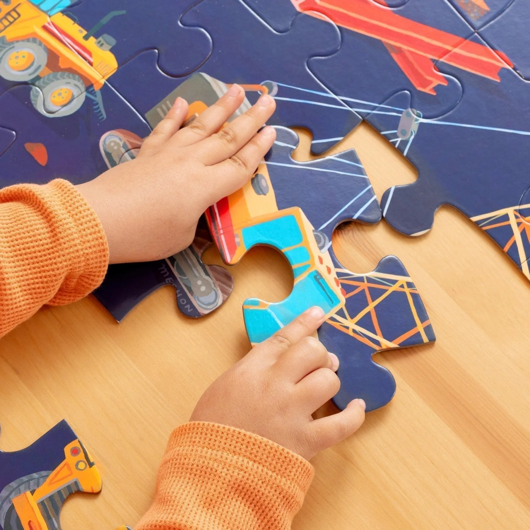 The littlest aspiring builders will love piecing together the trucks, diggers and cranes in this construction themed 36-piece floor puzzle. All wrapped up in its unique contour-shaped storage box, the jumbo, sturdy pieces of this high-quality puzzle are ideal for little hands.
