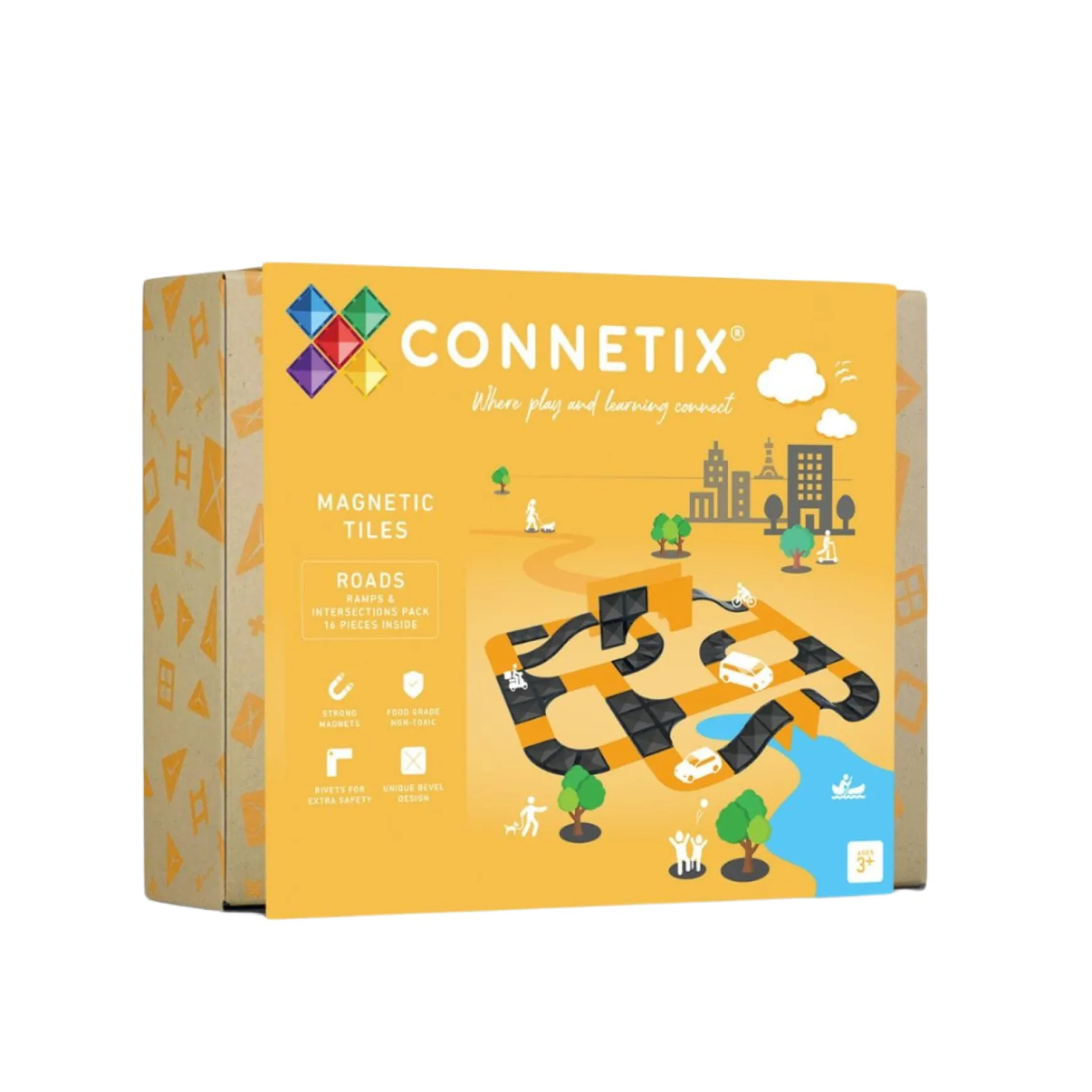 The striking black tiles make a stunning backdrop for roads, ramps, and runways. With no white lines or road markings, the open-ended design encourages kids to reimagine and reinvent their creations. Fully compatible with the entire CONNETIX range, this pack is a perfect addition to the 48 Piece Roads Creative Pack and Rectangle sets, expanding your collection and unlocking limitless design possibilities. As a versatile toy that grows with your child, CONNETIX is an exceptional choice for families and educators alike.