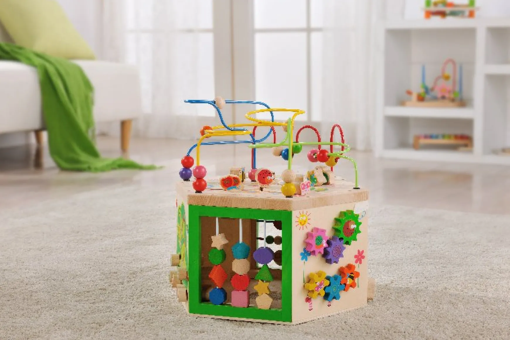 The EverEarth Educational 7 in 1 Garden Activity Cube is a dynamic, multifunctional learning toy designed to captivate young minds and encourage early development. This vibrant activity cube includes a variety of interactive features such as a bead maze, shape sorter, abacus, moving cogs, and counting blocks numbered one to ten, ensuring no surface is left untouched by stimulating play.