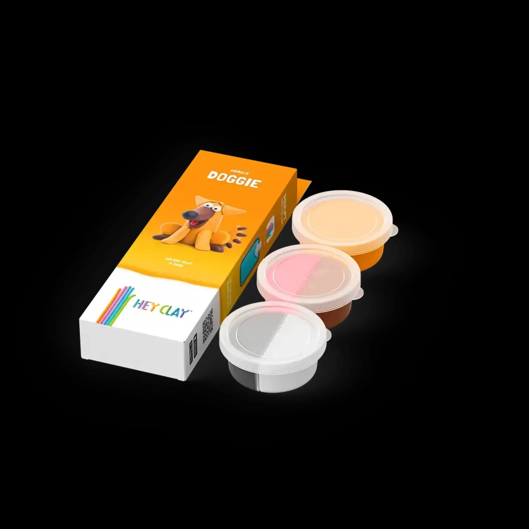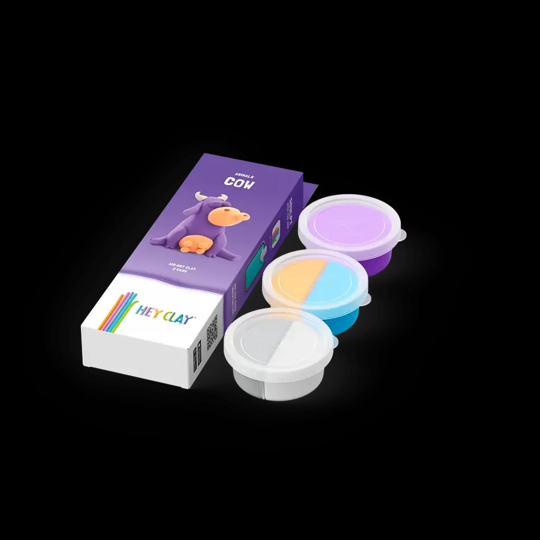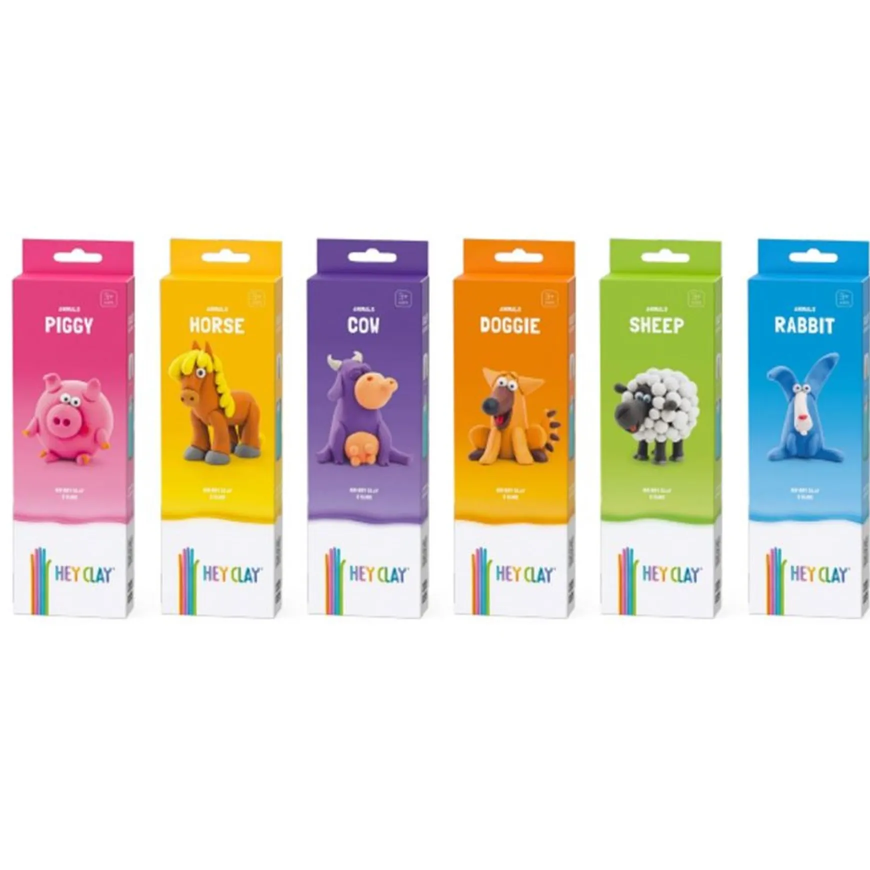 Become a professional clay artist! Included in the box are 3 cans of soft, lightweight, non-sticky, nontoxic, and stain-free clay for molding one fun and friendly animal. Assortment includes the following animals; Piggy, Horse, Cow, Doggie, Sheep, or Rabbit Follow along with the printout – Or download the free app and use the included code to explore interactive, 3D step-by-step instructions! Real clay art becomes wonderfully intuitive with the Hey Clay Claymates.