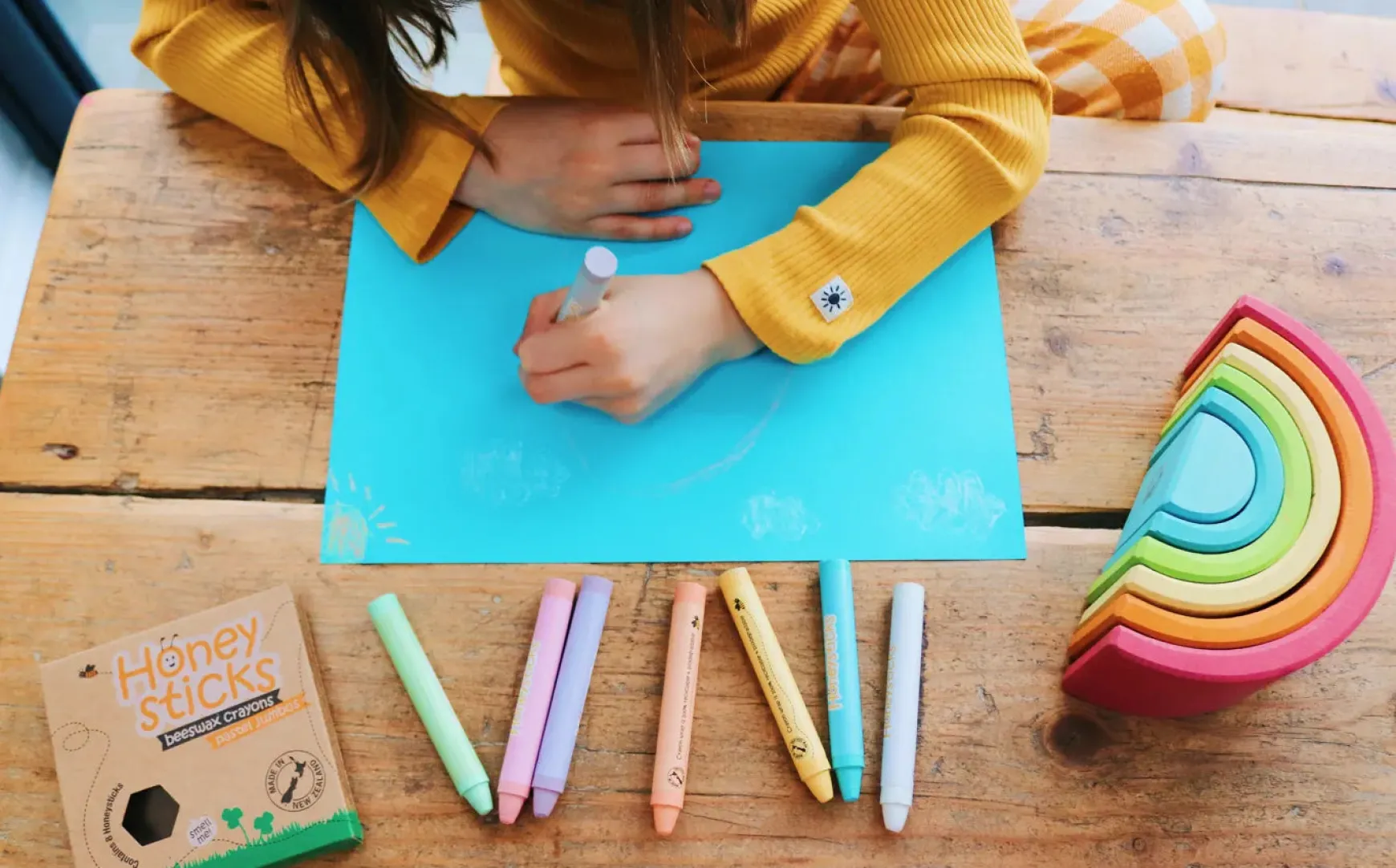 Honeysticks 100% Pure Beeswax Jumbos Crayons (8 Pack) are a must-have for any budding young artist! Handmade from pure New Zealand beeswax and food-grade colors, these non-toxic crayons are completely safe for children of all ages and feature a delightful natural beeswax scent. With their new pastel colorway and ergonomic, longer shape, Honeysticks Jumbos are easy for little hands to hold, making them perfect for creative projects. Plus, their durable design ensures they’re hard to snap, reducing breakages and mess during play.