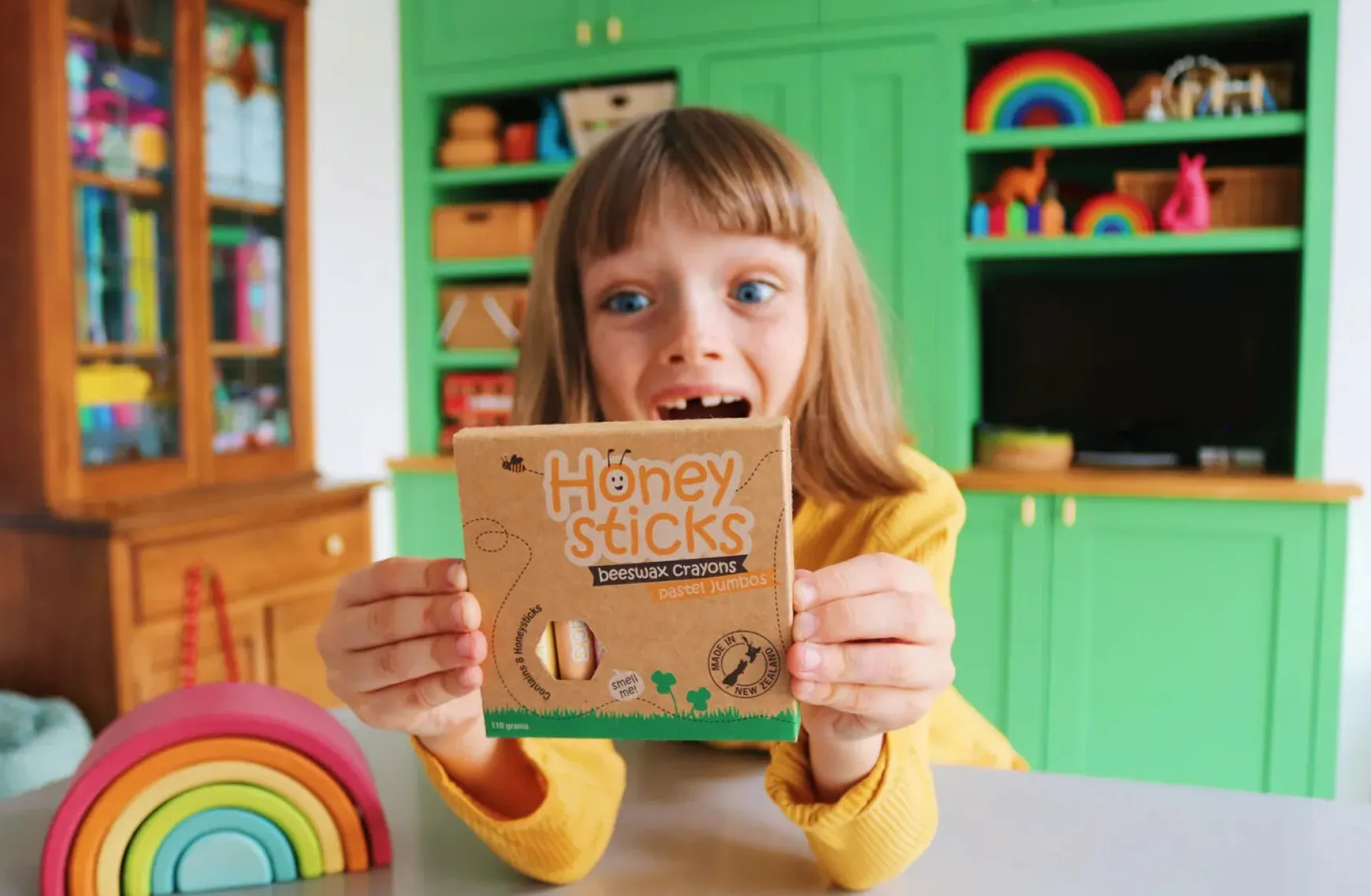 Perfect for kids with more developed grips, these Honeysticks Jumbos are ideal for art, coloring, and school projects. Available at Toybox Tales, where creativity and sustainability come together!