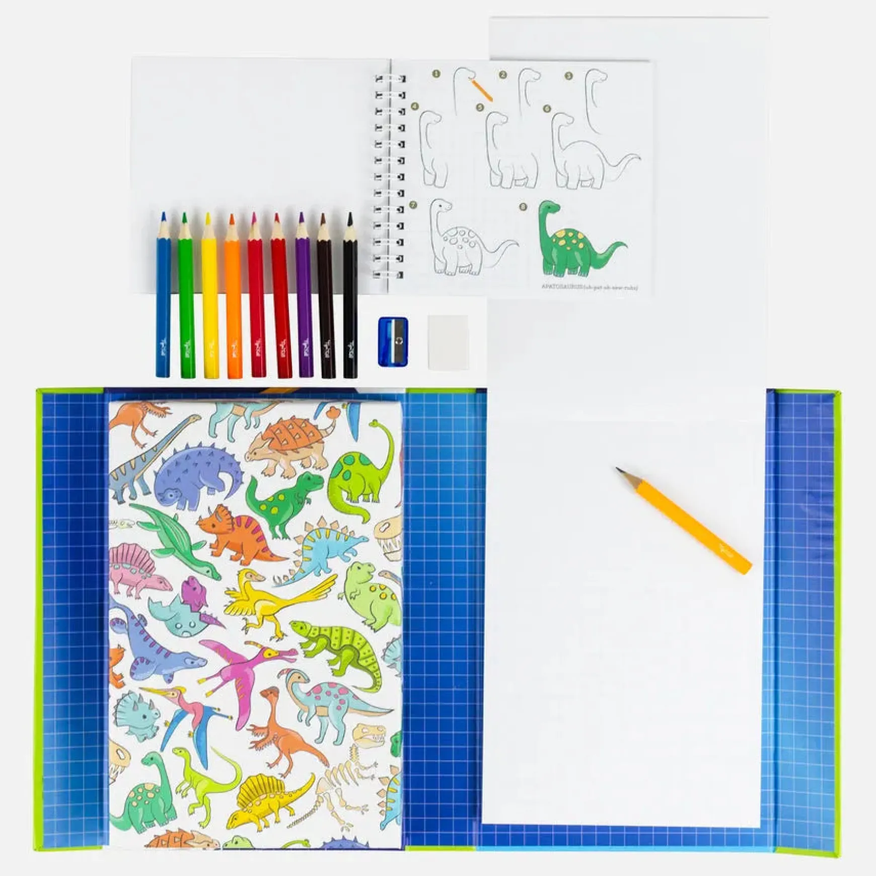 - All-in-one activity set teaching kids how to draw dinosaurs