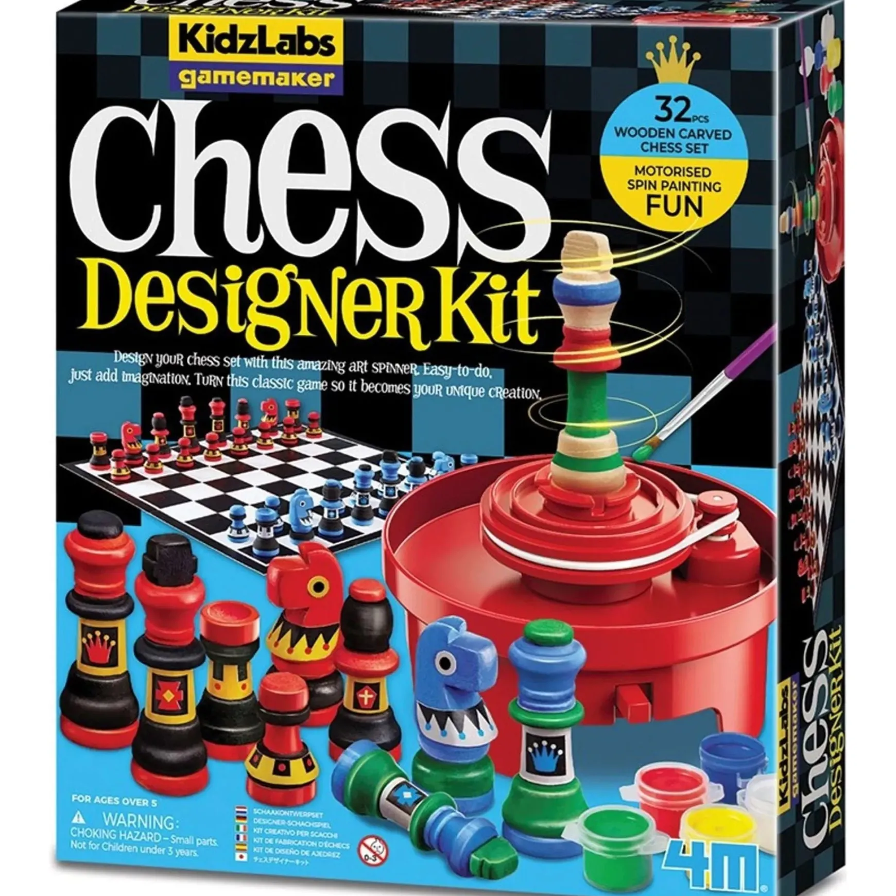 Design your very own chess set with this amazing art spinner! Comes with a full set of undecorated chess pieces, ready for you to add your creativity and create your own design, using the art spinner, paints and stickers included.