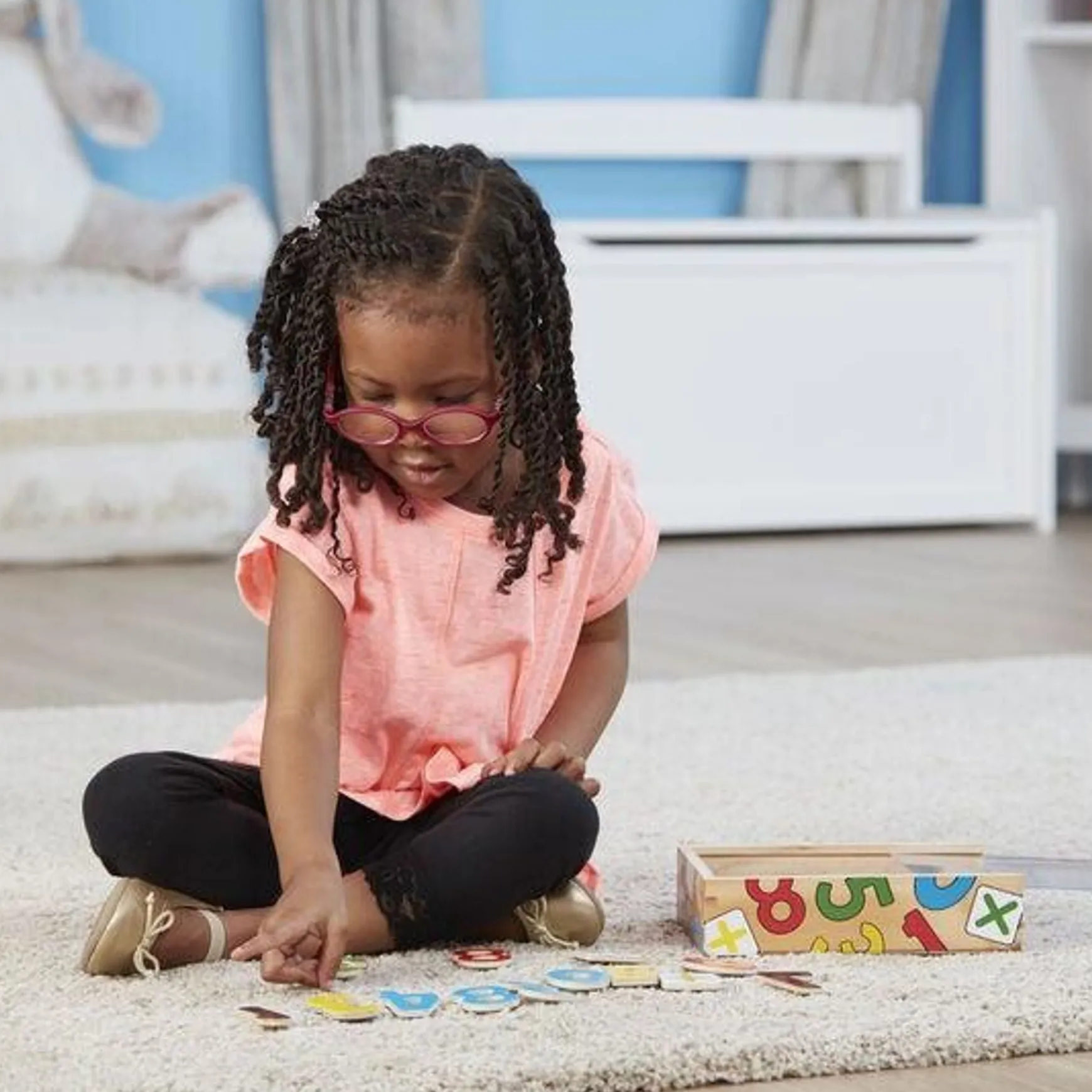 Enough numerals to count from zero through twenty AND five math signs in a convenient wooden case. 37 colourful magnetic pieces can help children learn their numbers and solve basic math problems.