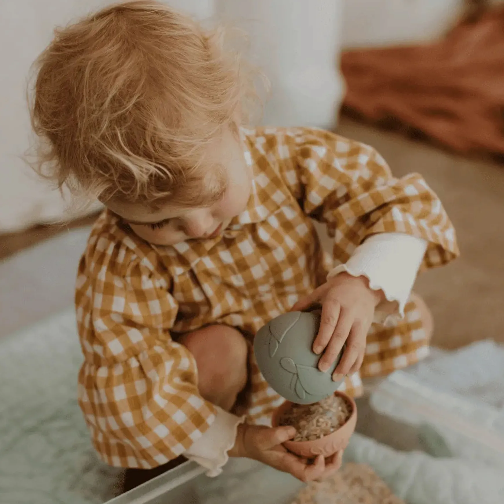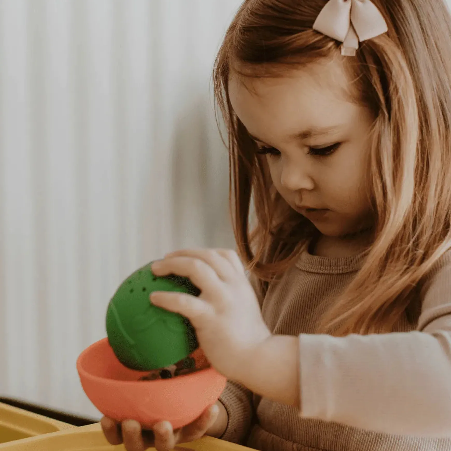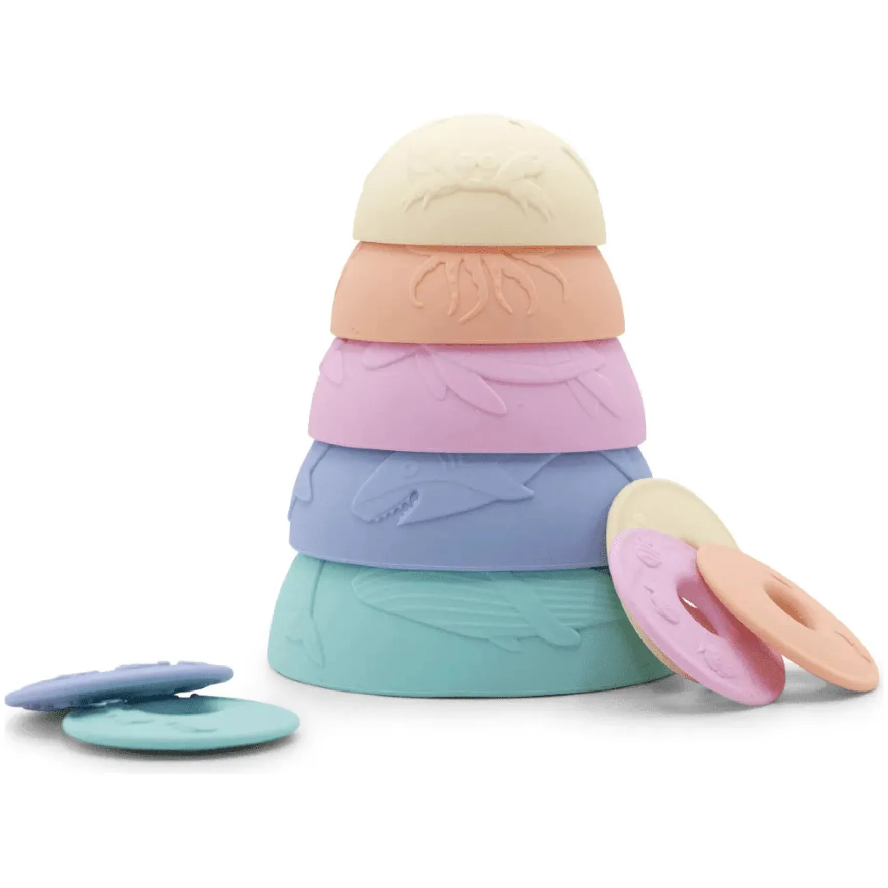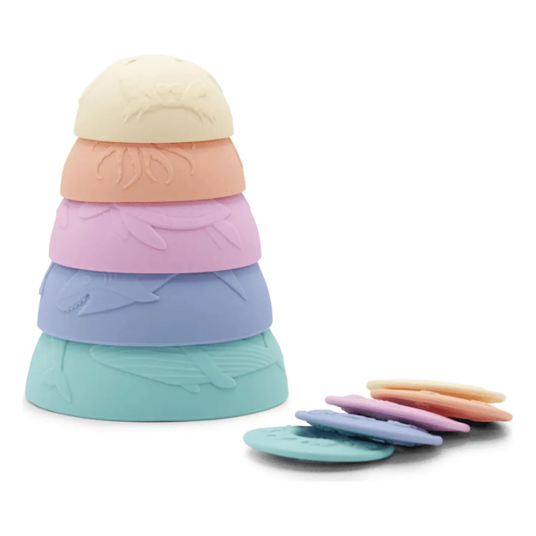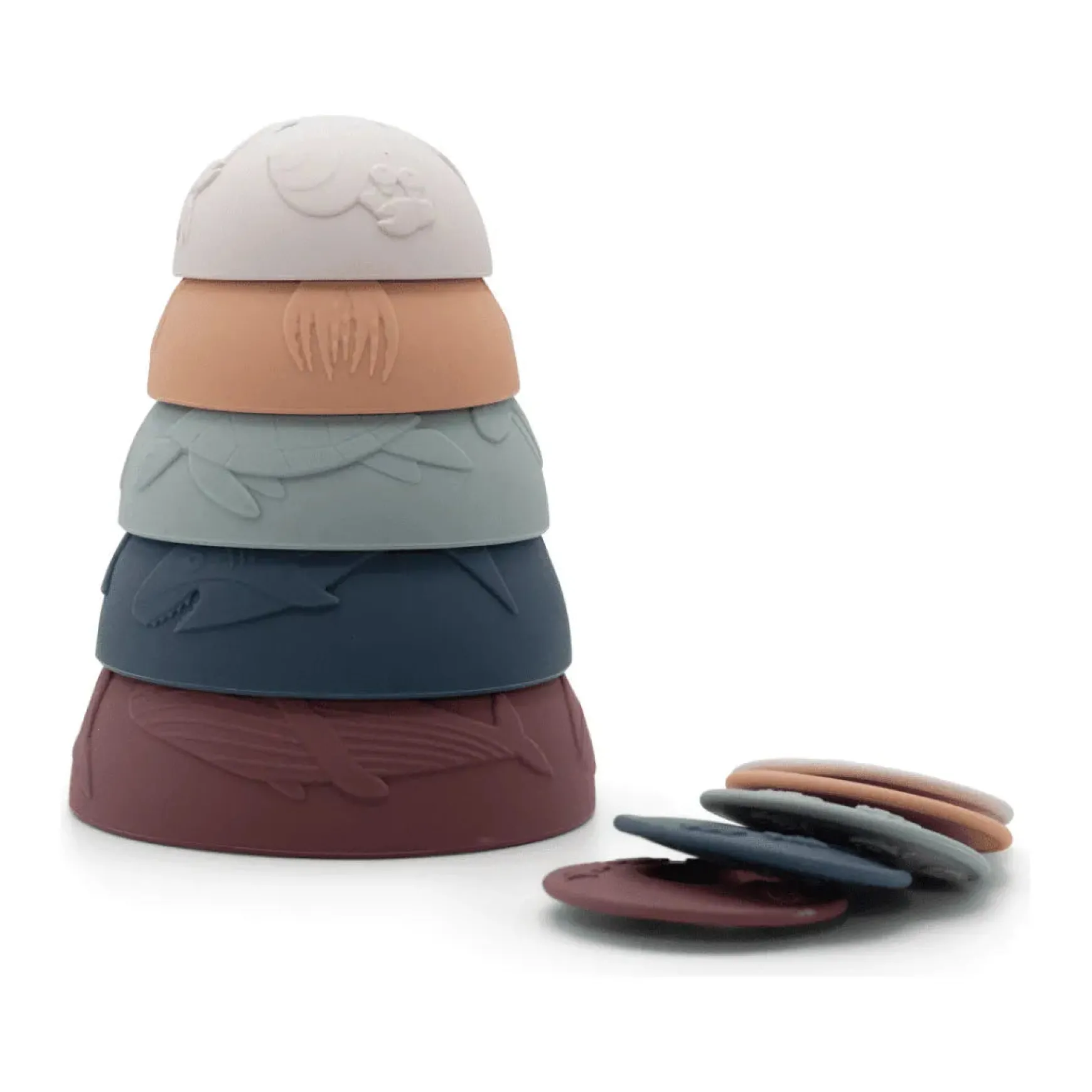 A set of 5 Stacking Cups plus 5 Treasure Coins! Our Ocean Stacking Cups can help your kids explore marine life through sensory play. Stack them up, nest them, hide objects under, texture stamp with sand or playdough…and match the coins with their cup!