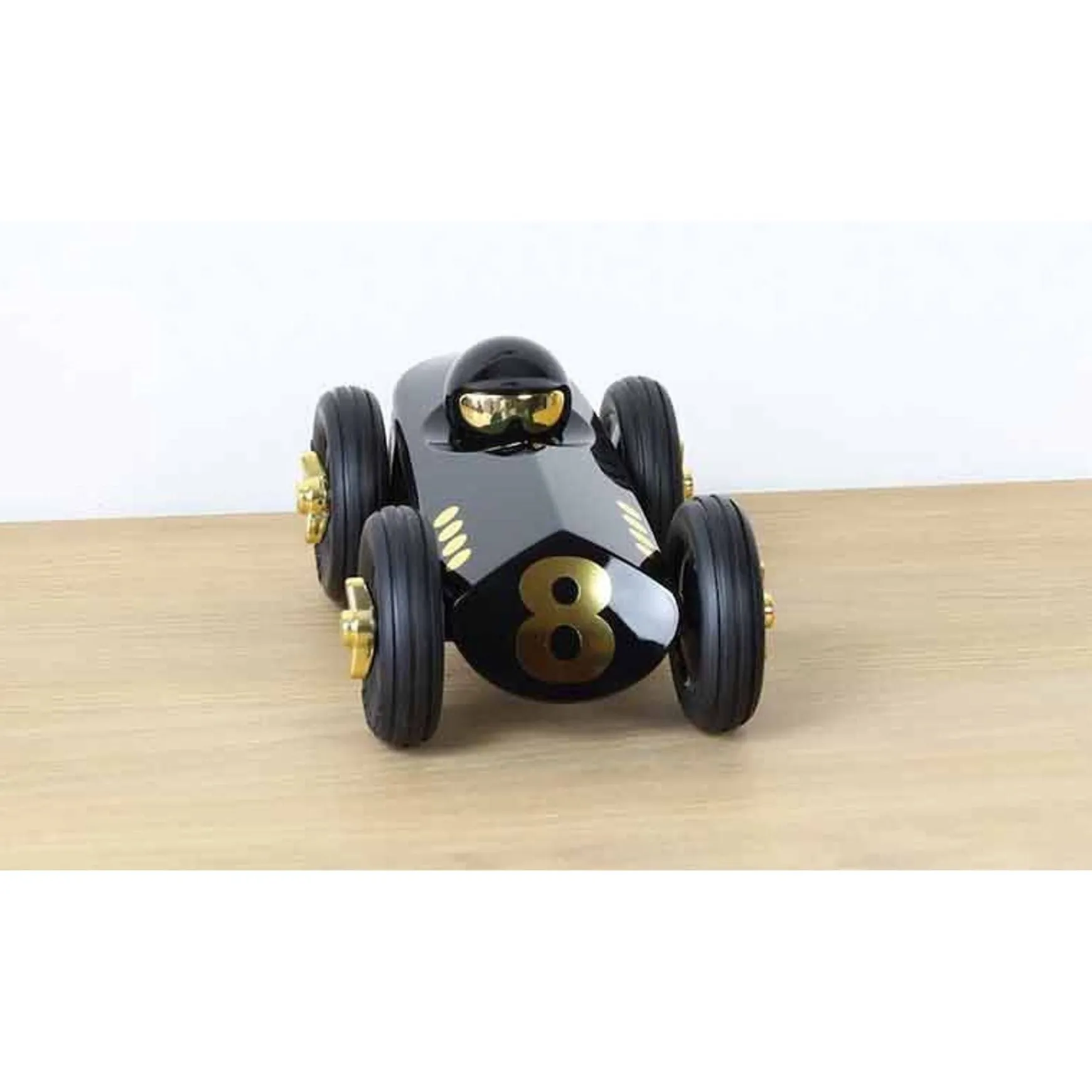 Vince is mysterious and cool as a cucumber. All black with hints of gold, he has soft rubber tyres to ensure he will start the race smoothly and quickly. The original Rufus was specially designed in the UK for Hugo Boss and then expanded into it’s own range under the Playforever banner. Made from heavy duty plastic, Playforever cars are solidly contructed in chic nostalgic styles and look just as good on the shelf as they do at play. Just one of several in the Rufus range of midi cars to choose from.