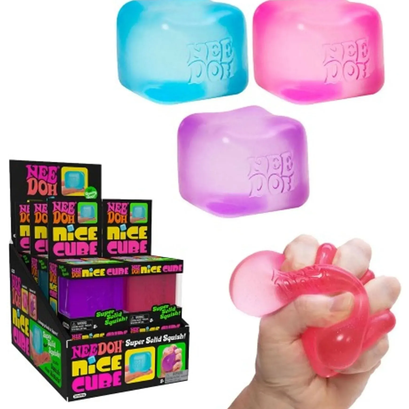 The groovy gratifying NeeDoh is now available as a cool, semi-transparent ice-looking square! NeeDoh Nice Cube still has all the irresistible power to find your best mellow and chill and always returns to its original shape, but now it has a groovy goo filling that feels soft with a slow squish and firm when fast squished. One sweet squeeze turns into many for a soothing sensory sensation in the office, classroom, car, at home or anywhere at any time.