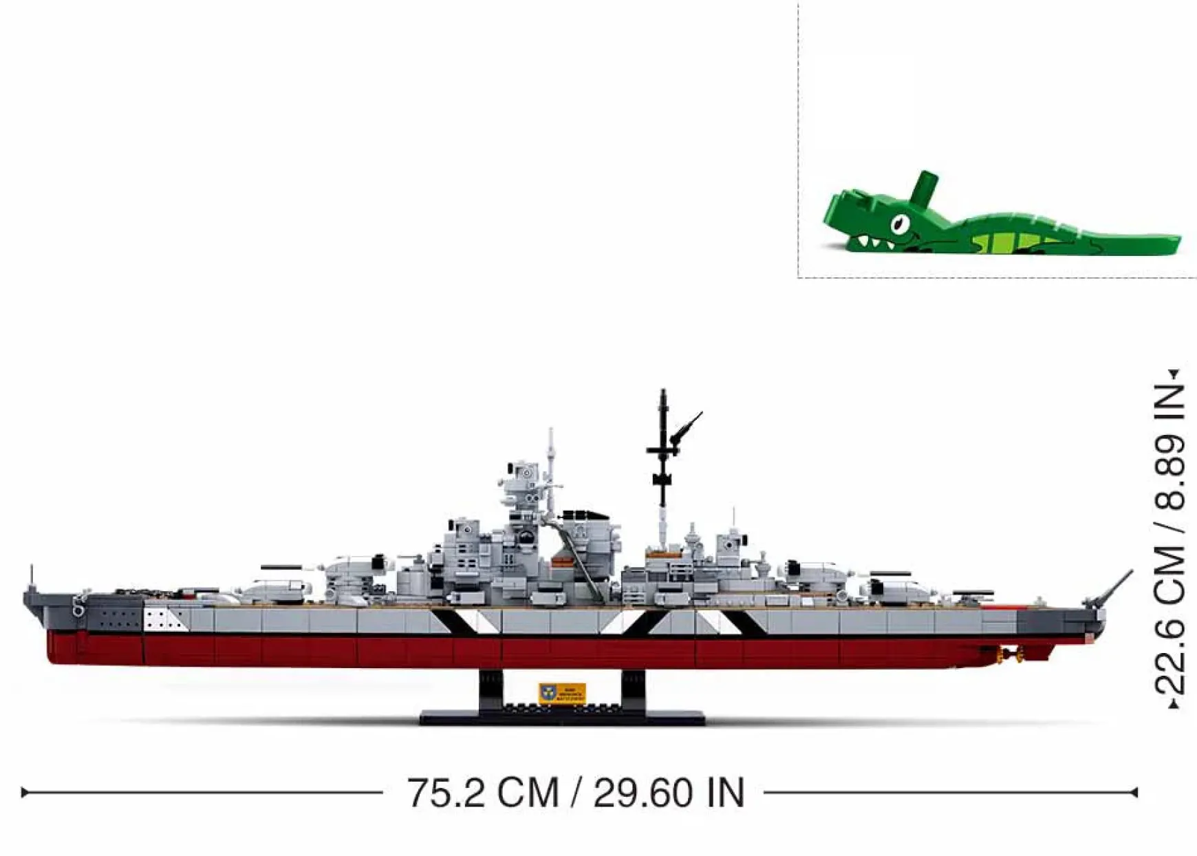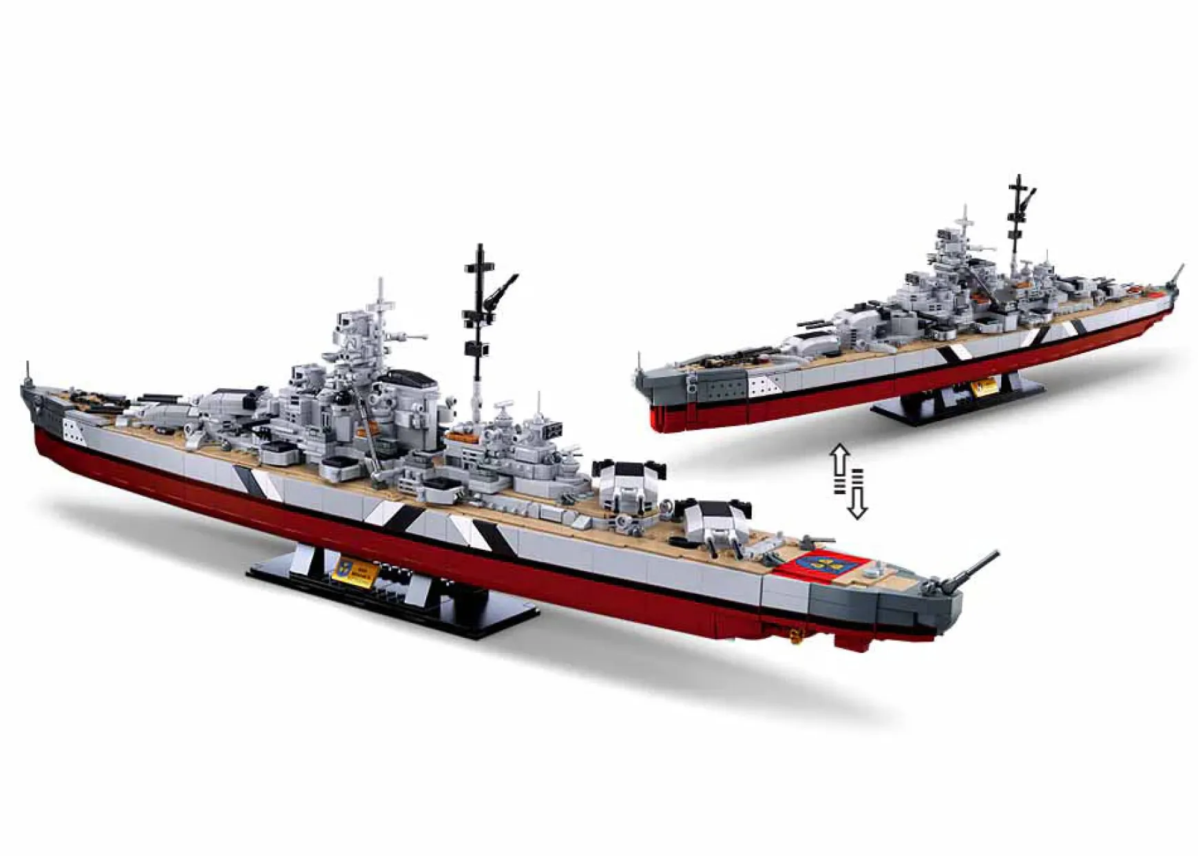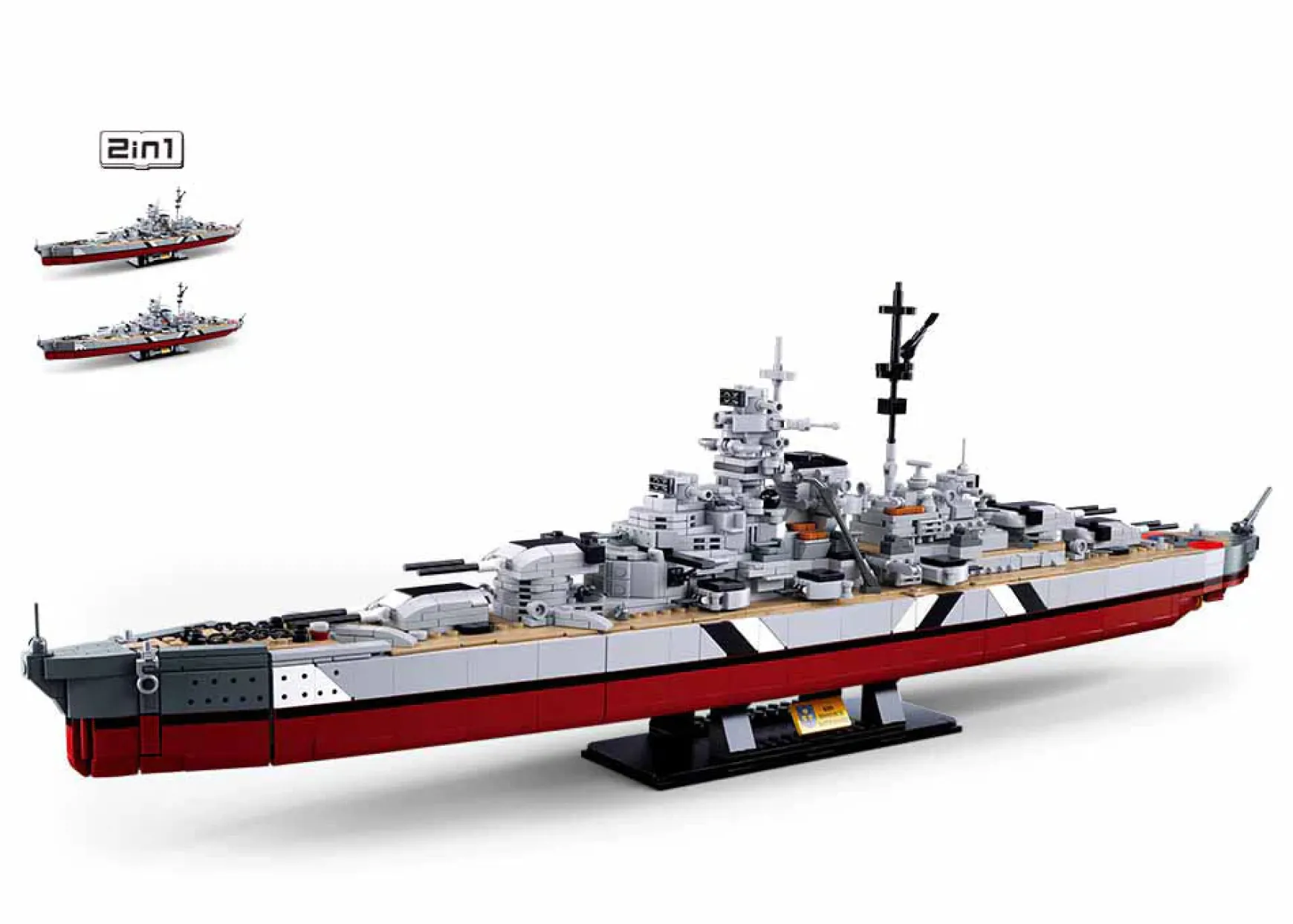 Command the seas with the Sluban Model Bricks Bismarck Battleship (2 in 1) – 1849 Pcs, an impressive building set for young naval enthusiasts. This massive model captures the historic battleship in detail and offers two design options for varied play. Constructing this battleship enhances fine motor skills and encourages historical exploration.