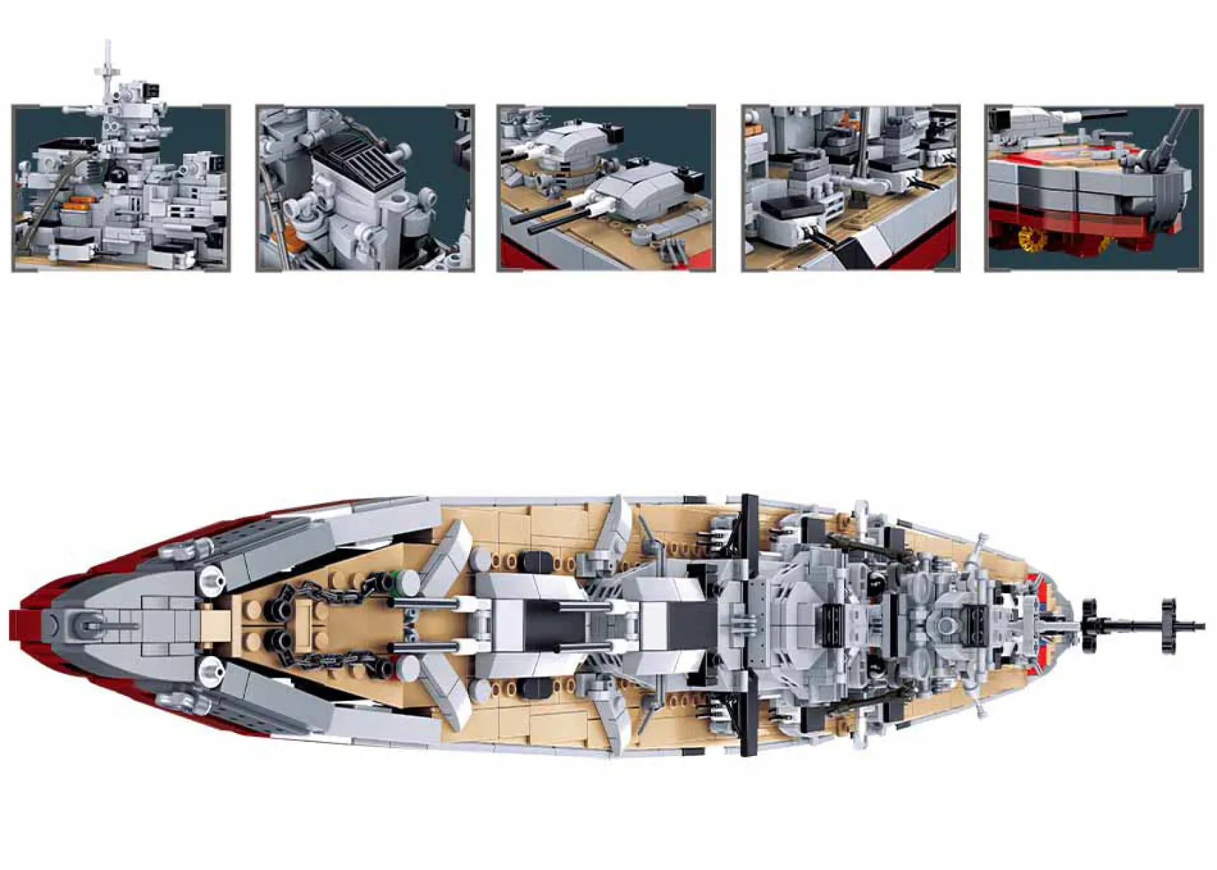 The Bismarck Battleship is compatible with other building block brands, making it a centrepiece in any collection. Available at Toybox Tales, where history and adventure set sail.