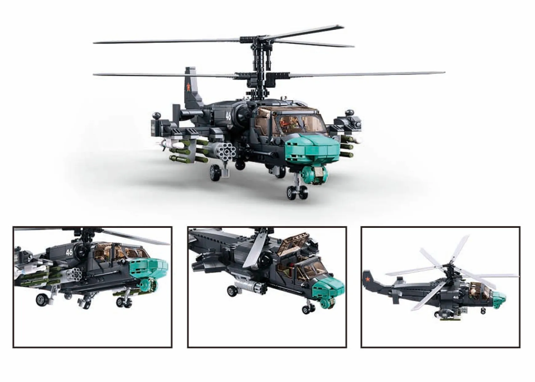 The Ka-52S Helicopter Gunship integrates with other building block brands, enhancing military-themed play. Available at Toybox Tales, where high-stakes missions begin.