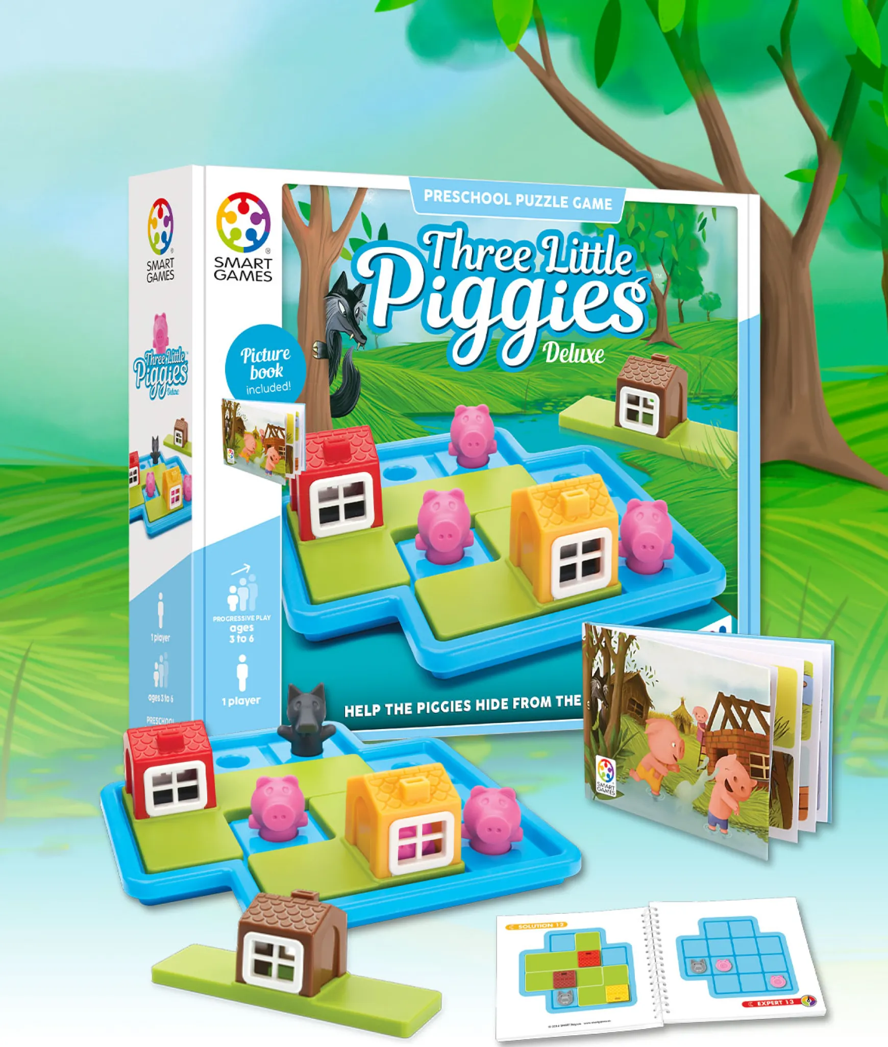 Bring a timeless fairy tale to life with Smart Games Three Little Piggies Deluxe. This enchanting brain game invites toddlers and preschoolers to help three clever pigs build their houses and play safely outdoors. But when the wolf appears, players must think quickly to protect the pigs by securing them inside their cosy homes. It’s a delightful mix of storytelling and problem-solving that captivates young minds.