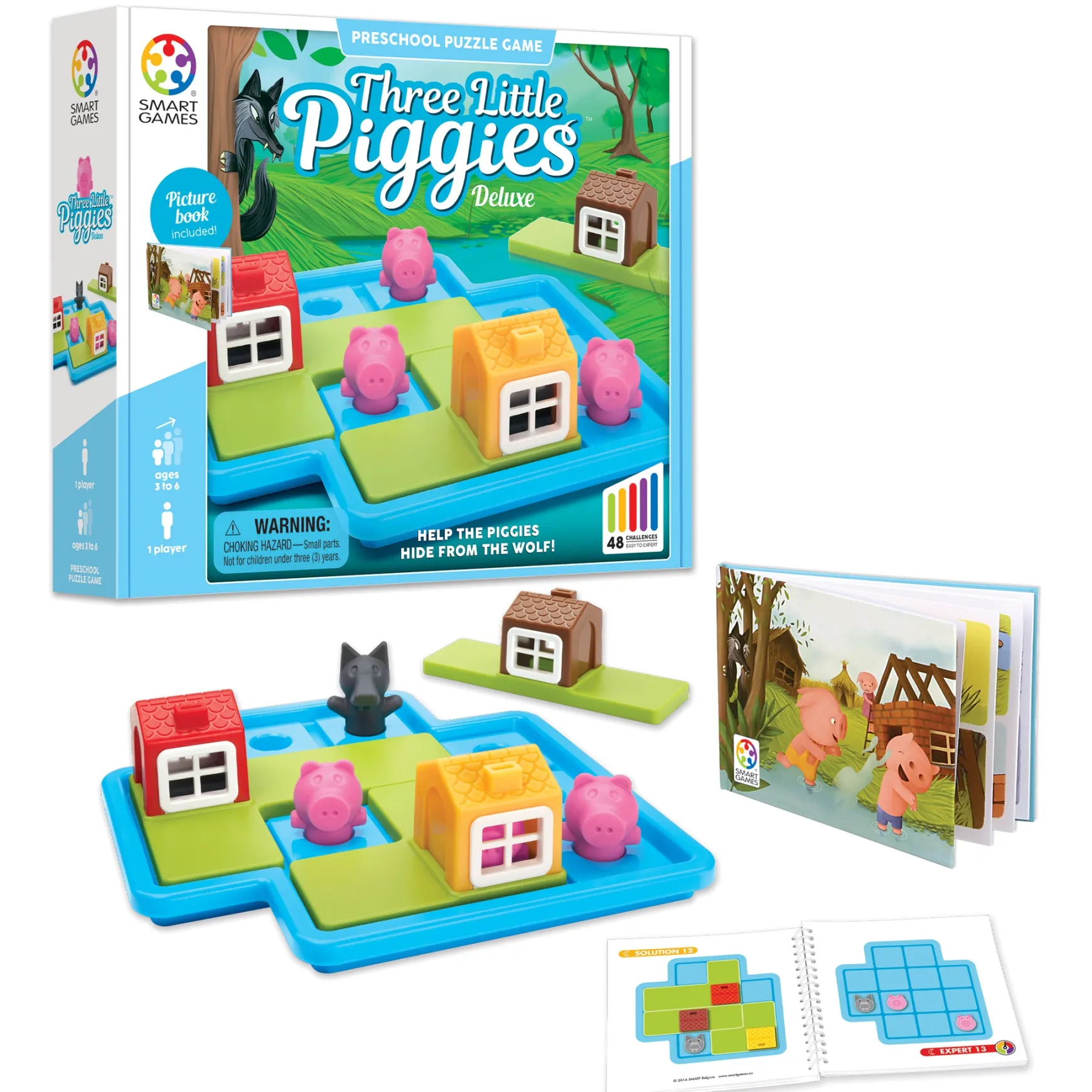 Designed with little hands in mind, this game features three large, sturdy puzzle pieces that are easy to hold and manipulate. Children will love discovering how the pigs fit snugly into the houses and peek out from the windows. Combining playful storytelling with critical thinking, Three Little Piggies Deluxe is perfect for fostering logic, spatial reasoning, and creativity in kids aged 3 and up.
