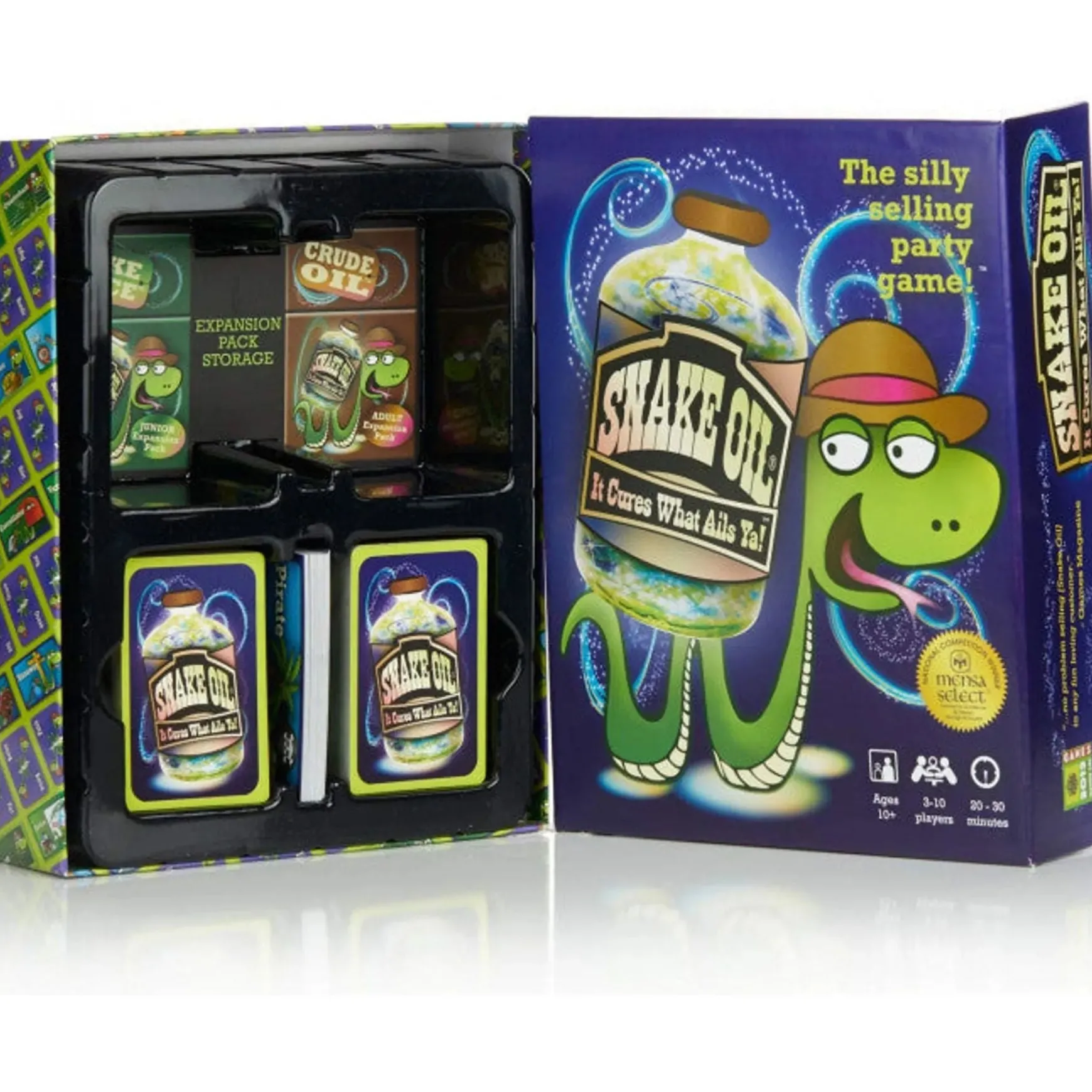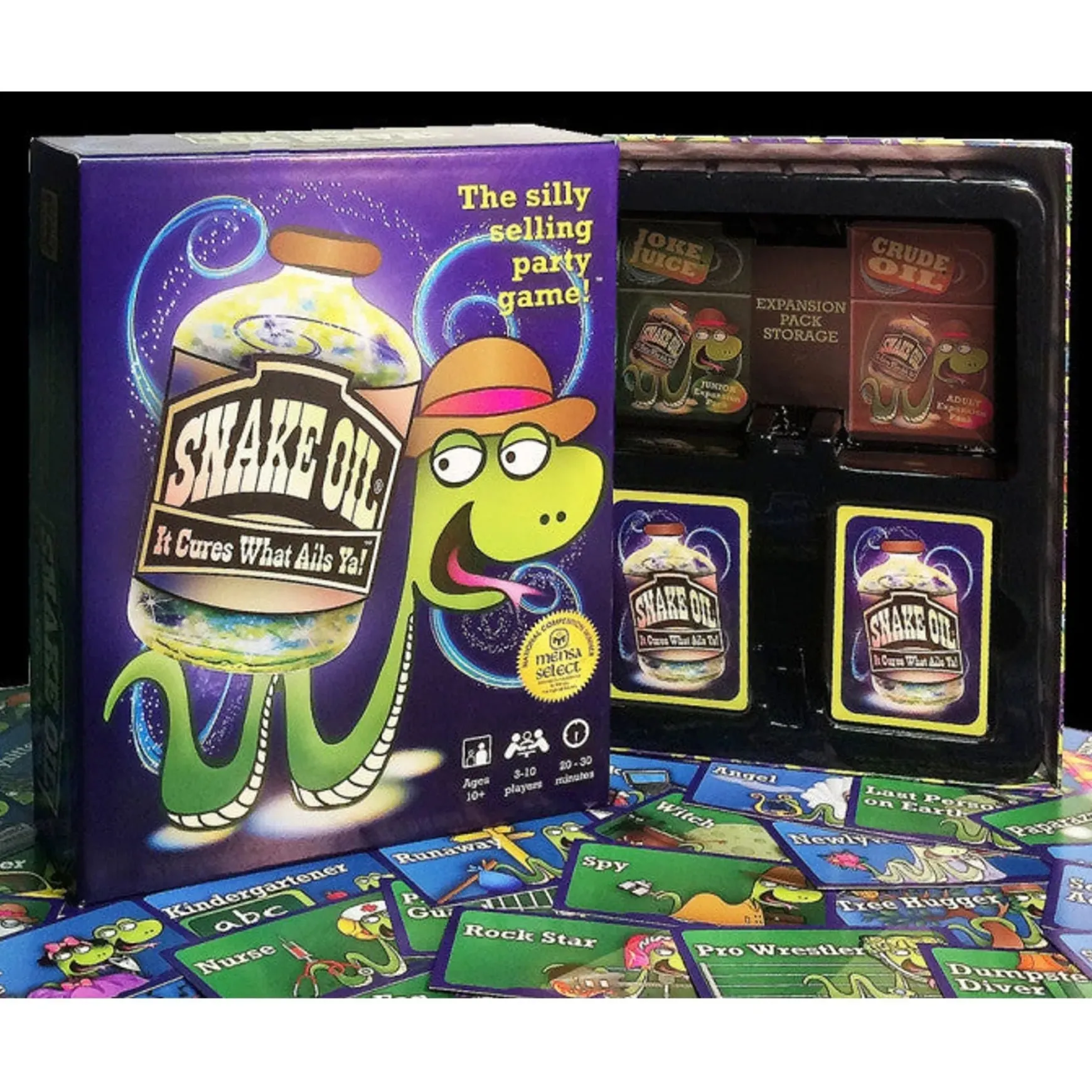 AWARD-WINNING: This National Mensa Competition Winner is sure to become a classic. Fast gameplay and simple rules make Snake Oil the perfect party game.
