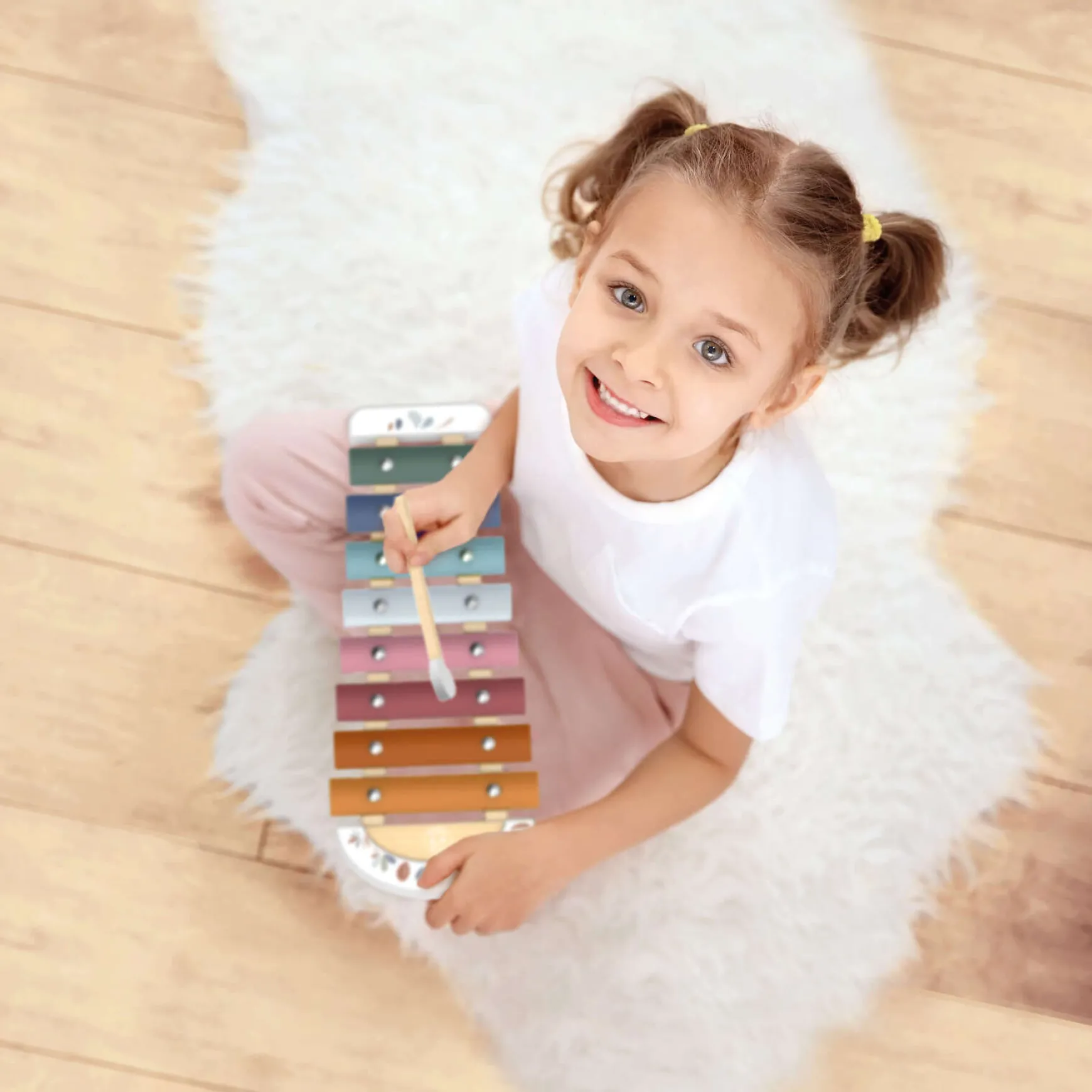 A fine colourful xylophone with metallic keys and a single piece wooden mallet that your little one will enjoy. Totally safe as it doesn’t have any sharp edges. It offers the full scale of eight musical tuned bars for an authentic musical experience. Each coloured key in this musical toy matches their assigned notes for easy learning. This toy is crafted from sustainably sourced wood from FSC® certified forests and coated with non toxic paint.