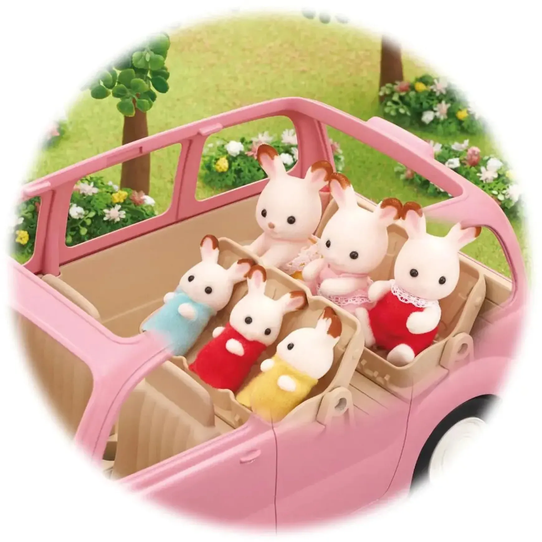 The Family Picnic Van is a car with a roof rack, that can fit up to eight figures. Remove the boot door and seats to turn them into a picnic table set. Includes Main unit, Rack, Back door/Table, Handle, Basket, Seat/Child seat x2, Cheese x2, Croissant x2, Plate x2, Drink x2 (a total of 15 pieces)