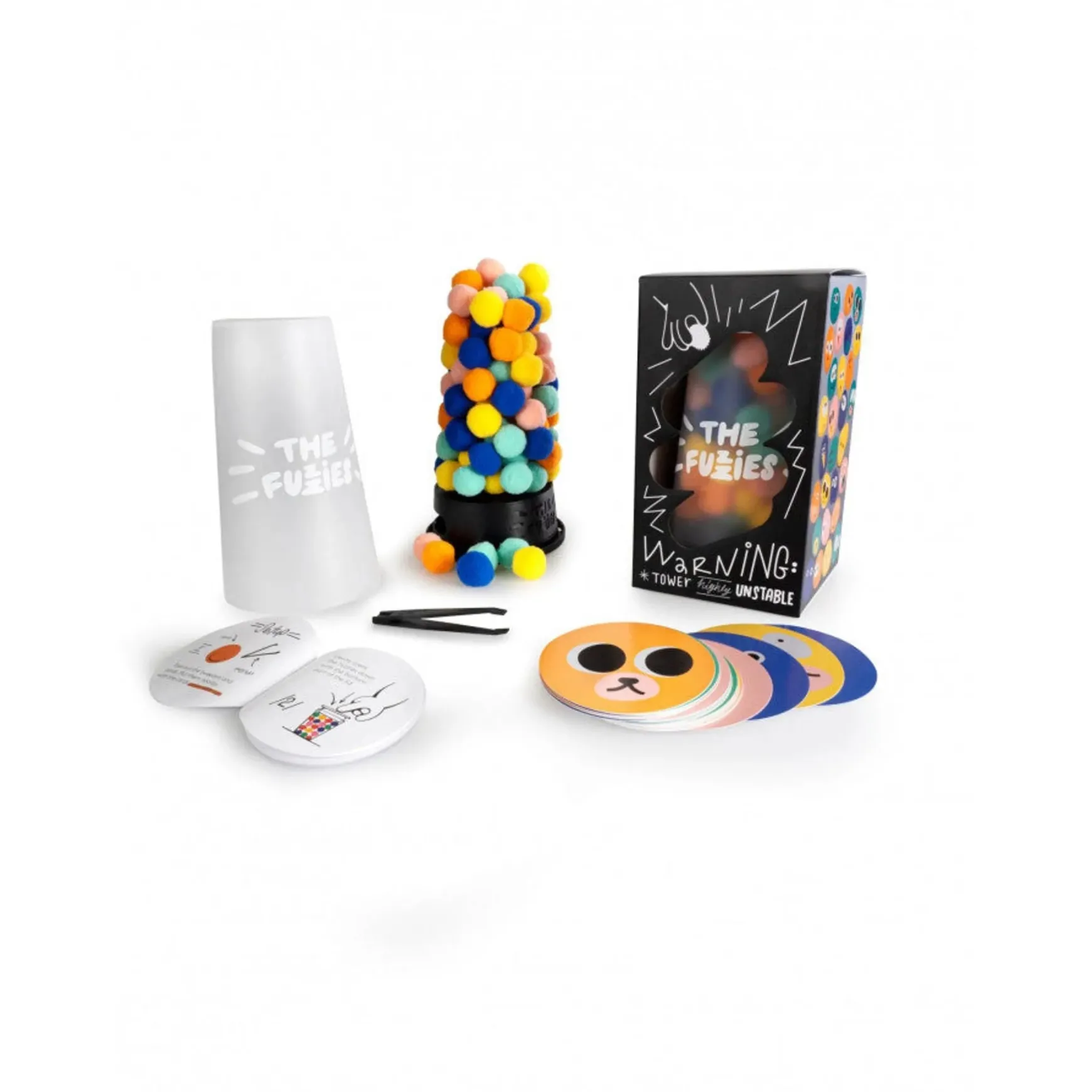 Draw a card a remove that color of fuzzy using either tweezers or your fingers but you can not get out of your seat. Stick it anywhere higher on the tower.