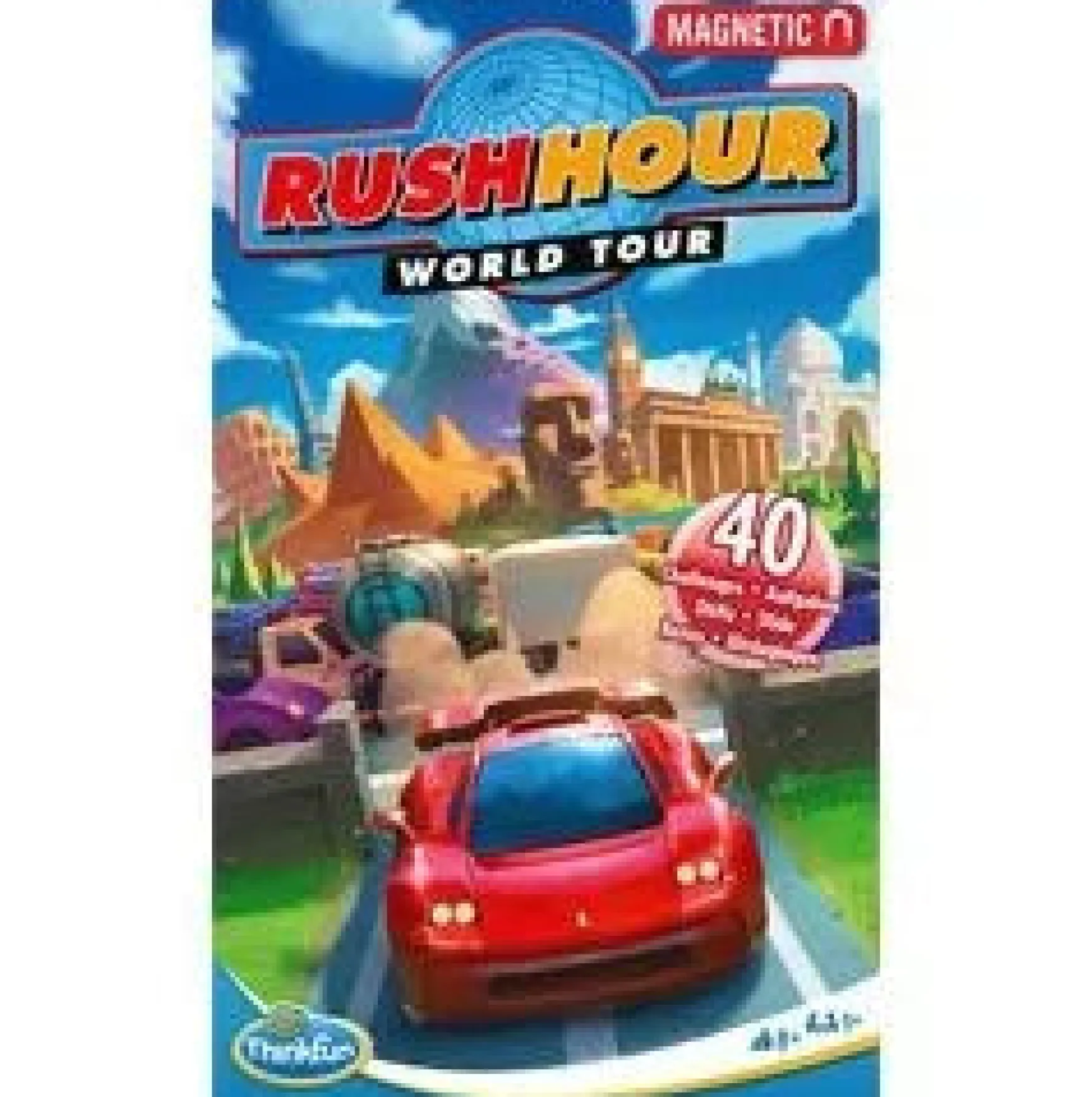 Take all the fun of Rush Hour all around the world! As you travel to your next destination, explore the major monuments and wonders of the world as you guide the red car out of the traffic jam. Enjoy amazing illustrations of historic locations as you play through the Rush Hour experience with the magic of magnets. With 40 challenge cards of increasing difficulty, kids will be engaging their brains on every car, plane, and train ride to new places.