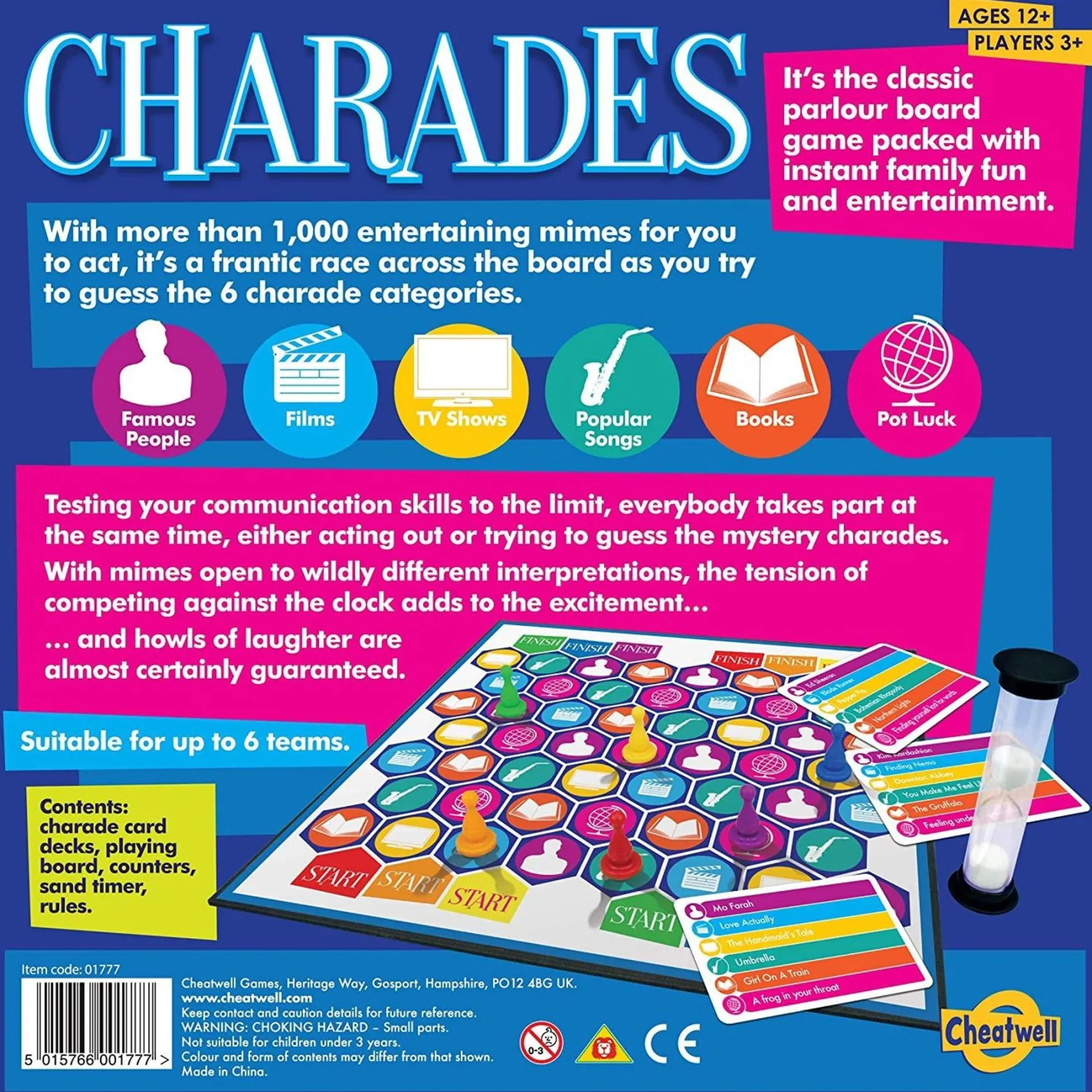 In this all-new guise for Charades, we’ve given it a modern update, with refreshed topical graphics, and an eye-catching playing board. The new decks of cards bring it bang up-to-date with the latest films and music added to the host of mimes that will get everybody up and acting!