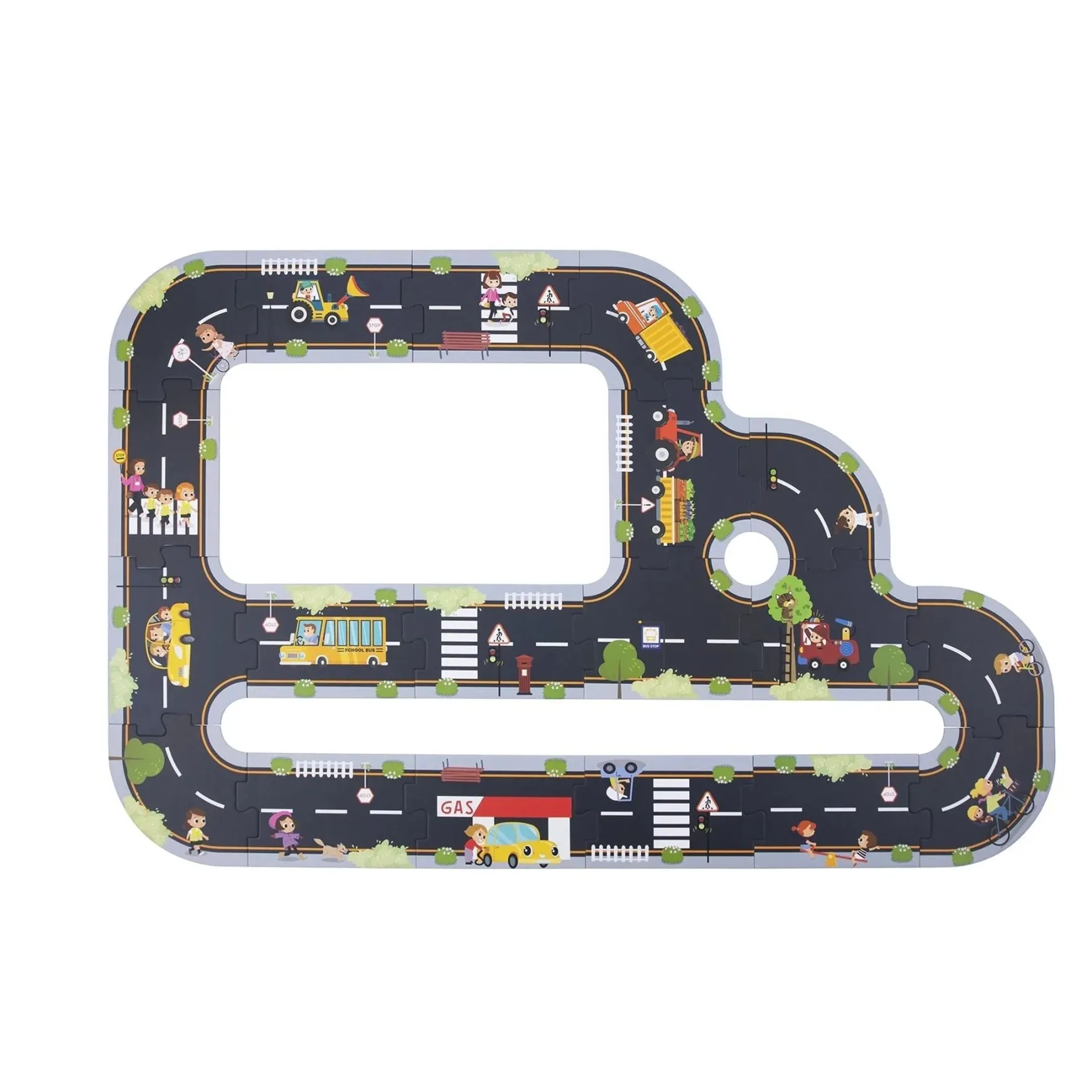 Create your own street with the City Road Playset from Tooky Toys. This playset includes 20 large chunky road puzzle pieces that can place arranged and rearranged as many times as you like to make a road for toy cars to travel on. The chunky puzzle pieces are made from sturdy card and measure approx 12 x 20cm, giving you a great length of road for any small toy car to travel on. When not in use, the City Road playset can be taken apart and stored in the handy carboard box packaging. It even comes with a carry handle for easy transport wherever you plan to go. The City Road Playset from Tooky Toys is made from sturdy cardstock and finished to the highest print quality.