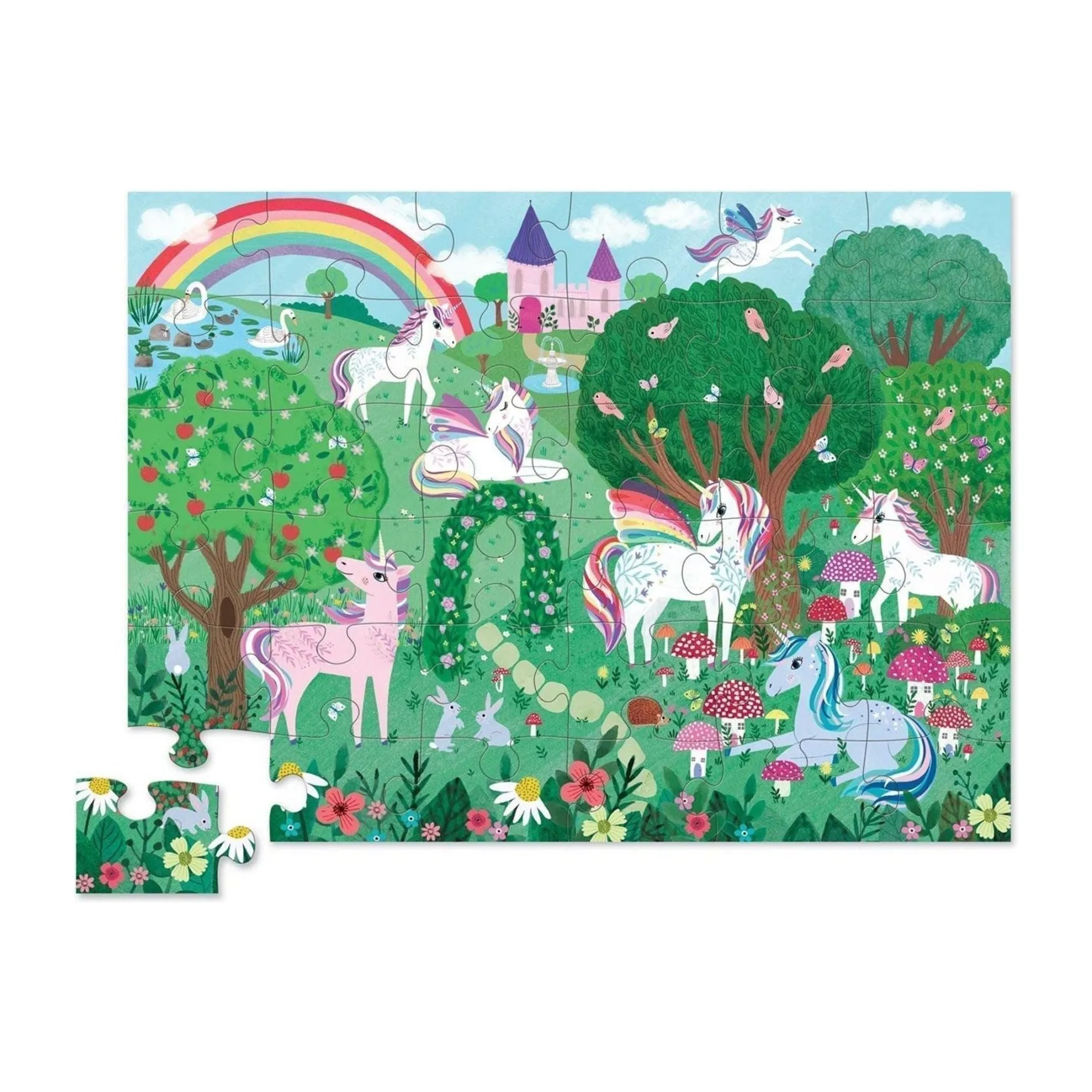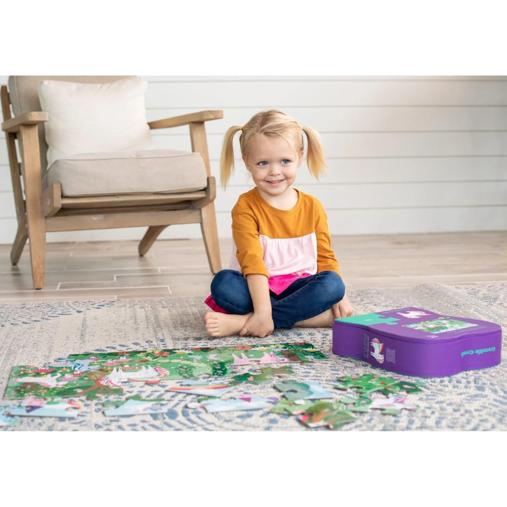 36-piece Puzzle. Something special, high -quality floor puzzle in wonderful, heavy-duty, contour-shaped gift box. A slightly-recessed lid makes the storage box easy for little fingers to open. Rugged, jumbo pieces. Suitable for ages 3+