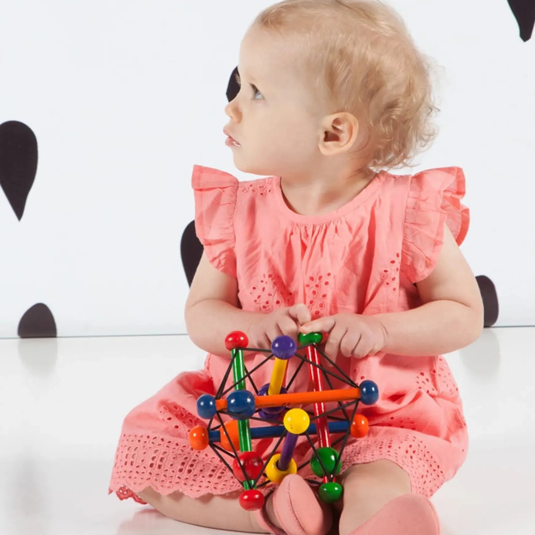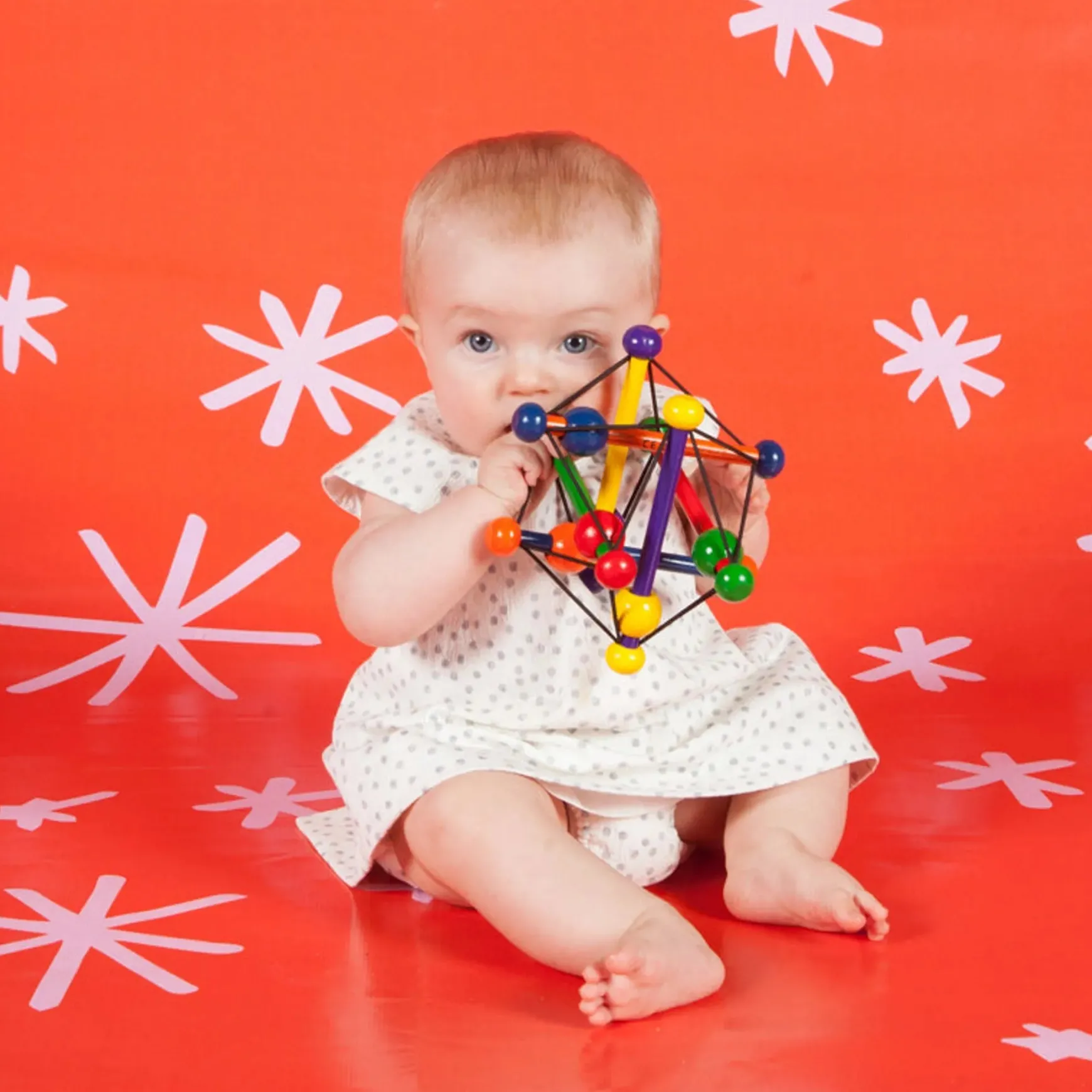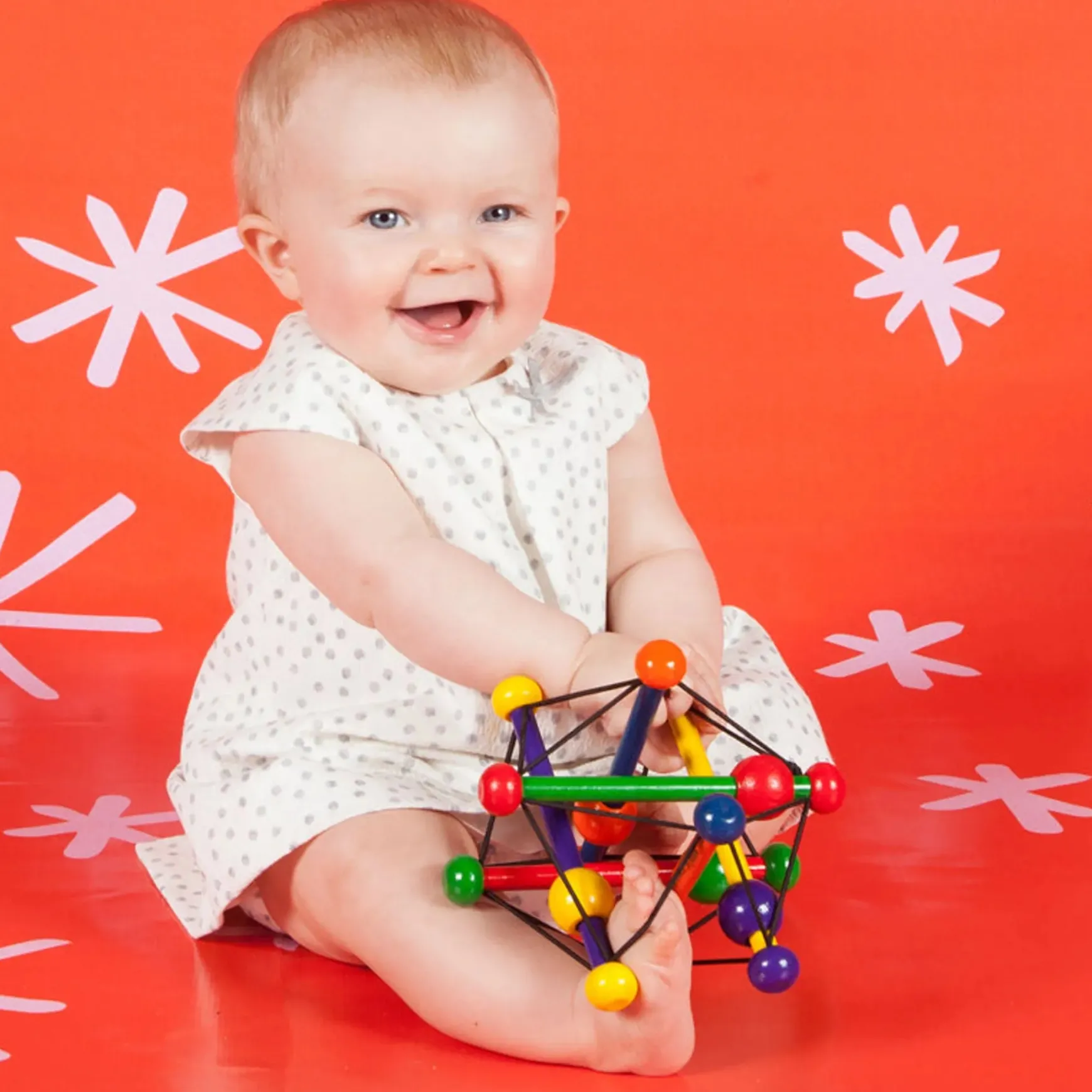 The award-winning Skwish is a world-renowned one of a kind wood rattle and teether toy. It’s name comes from its fantastic design. It Skwishes and returns to its original shape, with beads that slide and rattle. The Skwish is a great multi-sensory toy that introduces cause and effect while encouraging the development of gross motor skills such as grasping and reaching. The Skwish is made from sustainable rubberwood.