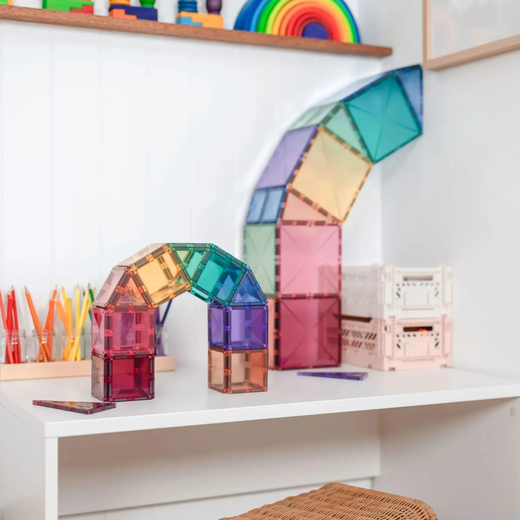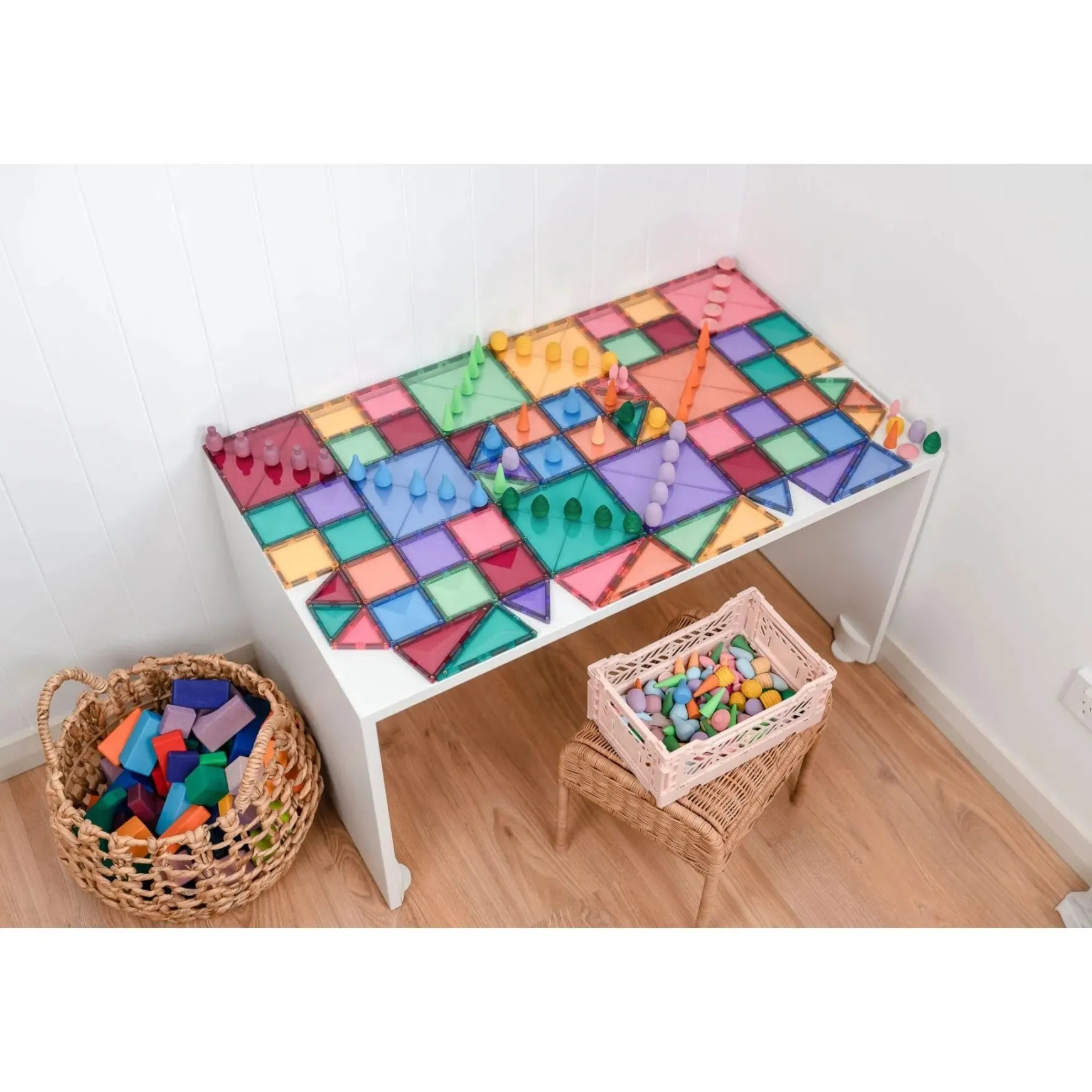 Experience STEAM learning with the Pastel Starter Pack as children of all ages explore magnetism, physics, symmetry, patterns and problem-solving. Discover the features of shapes and how they tesselate in both 2D and 3D creations. Enjoy our exclusive range of warm and cool pastel tones. Spark creativity and imagination as you design and construct houses, castles, car parks, robots or coin drops, plus so much more.