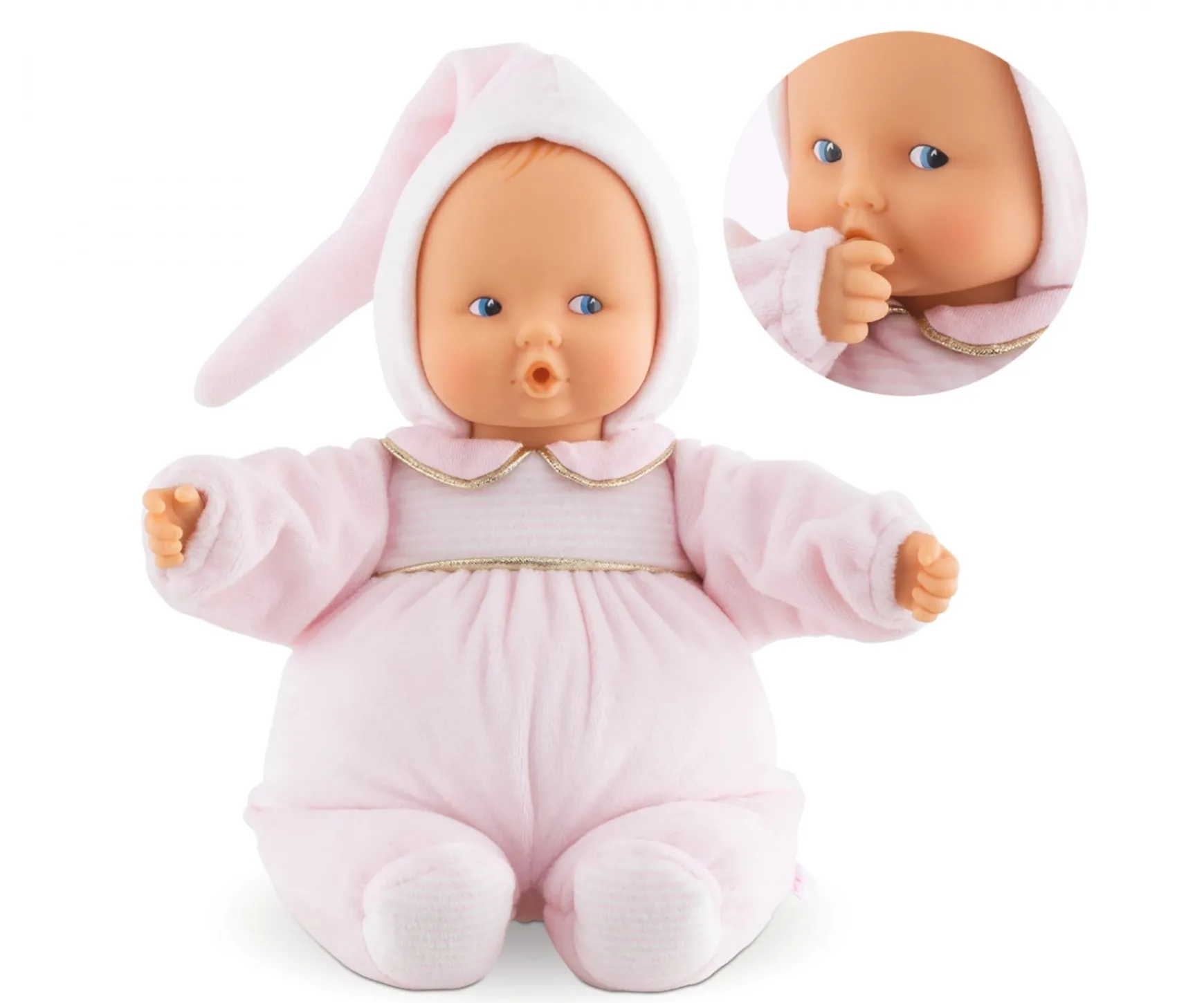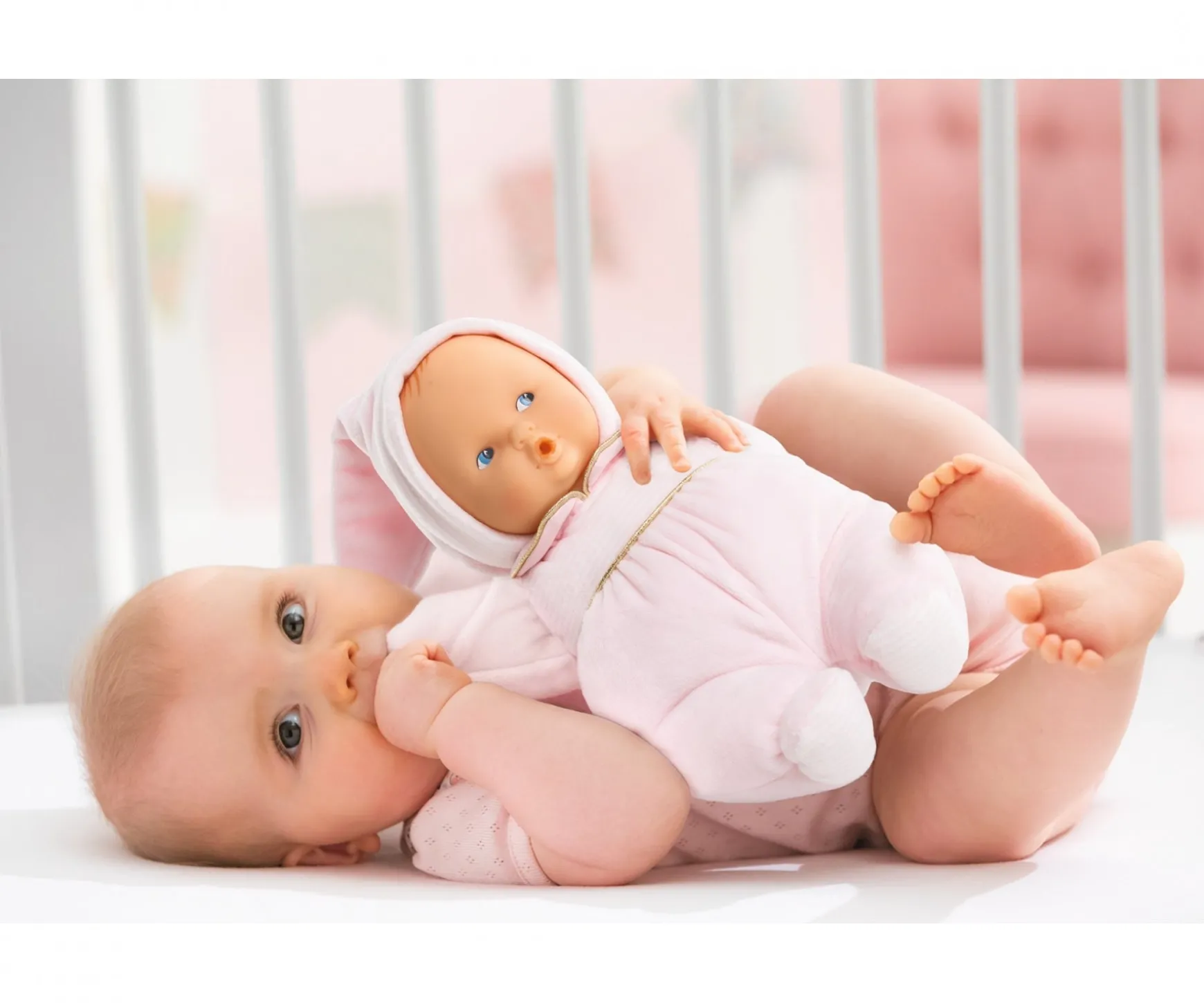 The Corolle Babipouce Sweet Dreams Soft Baby Doll is the perfect first companion for your little one. This iconic soft baby doll is made to provide comfort and joy with its super-soft, cuddly body and charming, realistic vinyl face. A gentle vanilla scent, a hallmark of Corolle dolls, adds an extra layer of soothing charm. Designed with your baby in mind, this doll stands at 11 inches tall and is lightweight, making it easy for tiny hands to grasp, hug, and carry. From its calming presence to its practical sewn-in tag for a name or phone number, the Babipouce Sweet Dreams is ready to be a lifelong friend. Plus, it’s machine washable on a delicate cycle—perfect for busy parents!