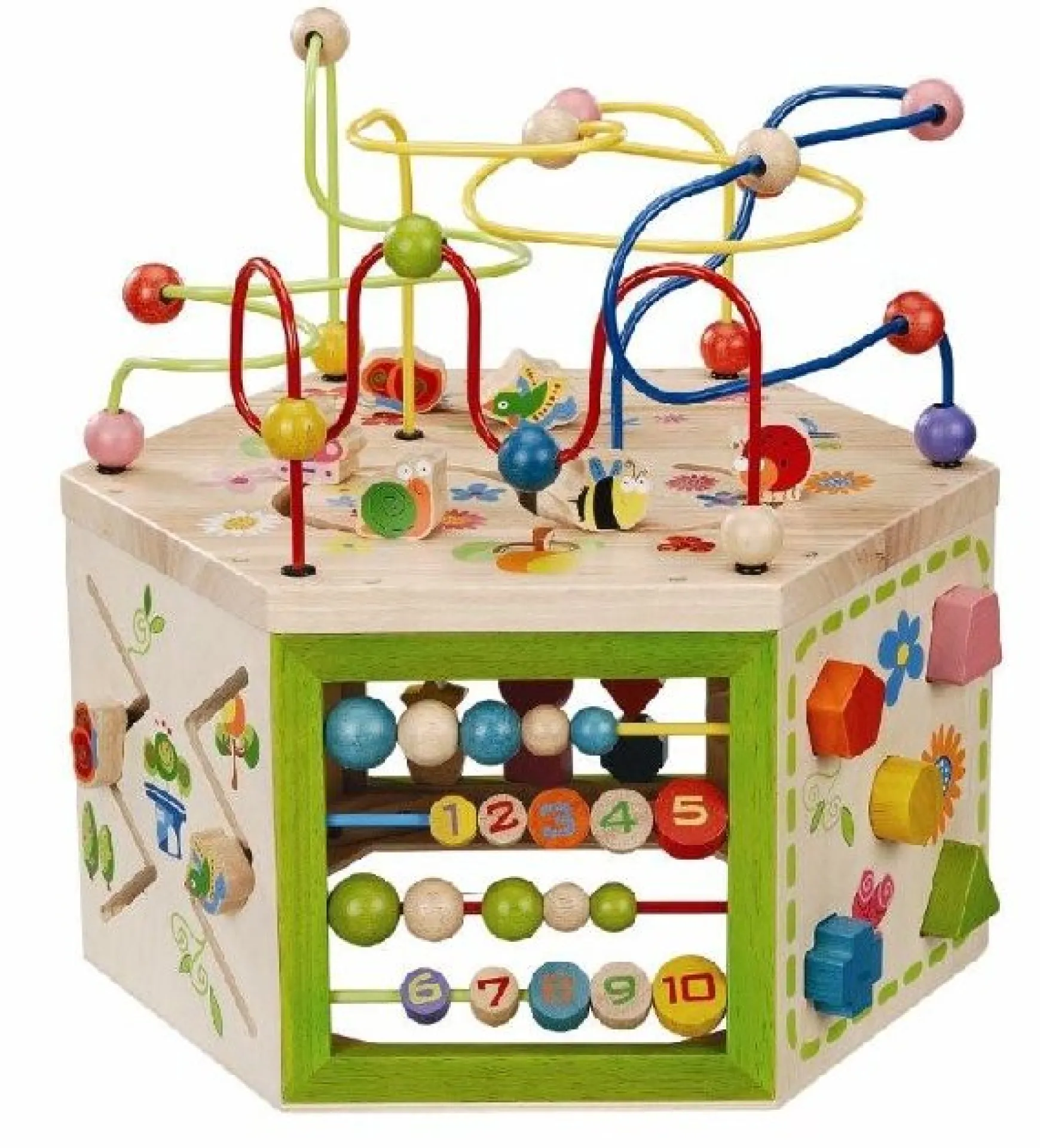 The EverEarth Educational 7 in 1 Garden Activity Cube is a dynamic, multifunctional learning toy designed to captivate young minds and encourage early development. This vibrant activity cube includes a variety of interactive features such as a bead maze, shape sorter, abacus, moving cogs, and counting blocks numbered one to ten, ensuring no surface is left untouched by stimulating play.
