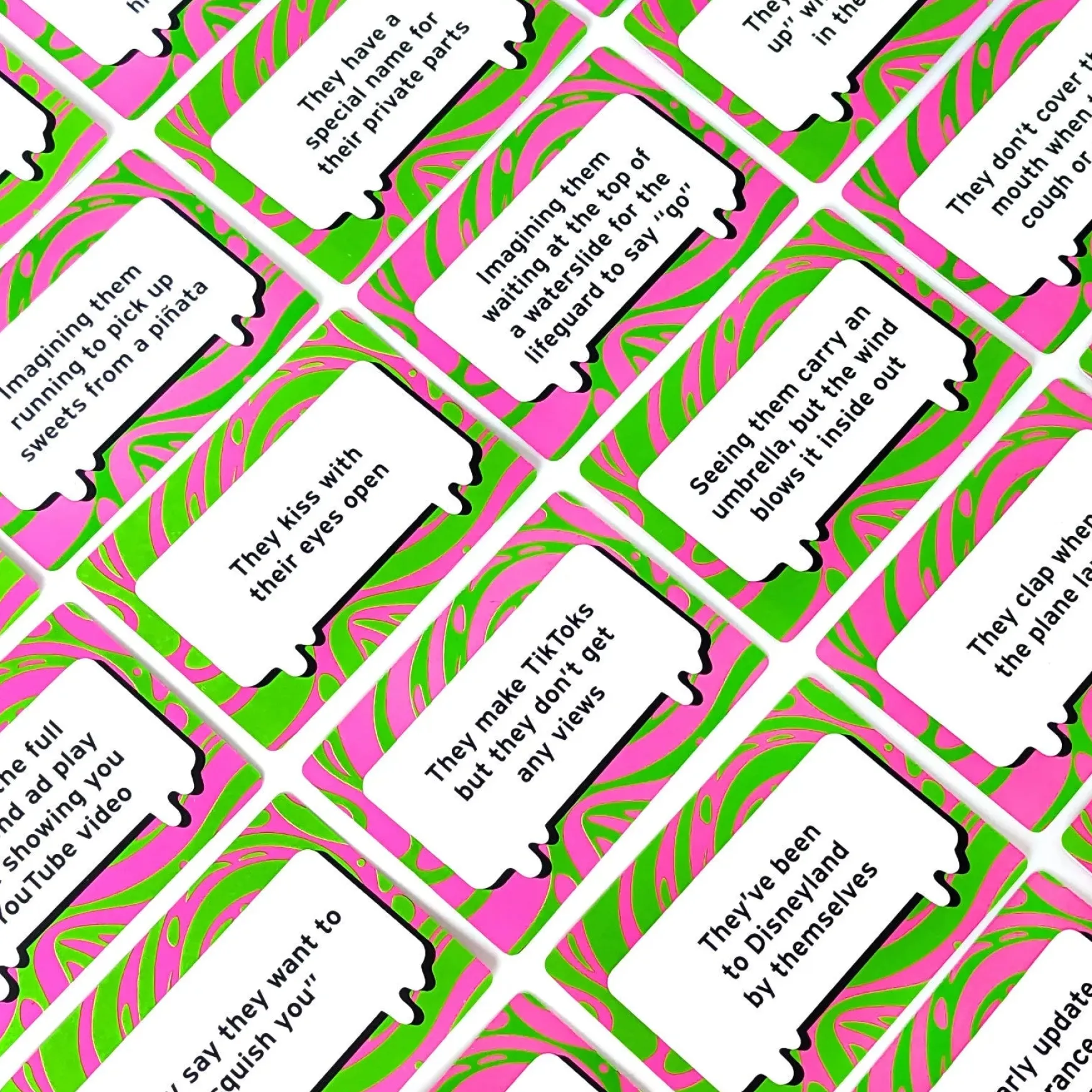 When they share inspirational quotes online. When they call dogs ‘doggos’. This is the ultimate party game for teens and adults to share their icks.
