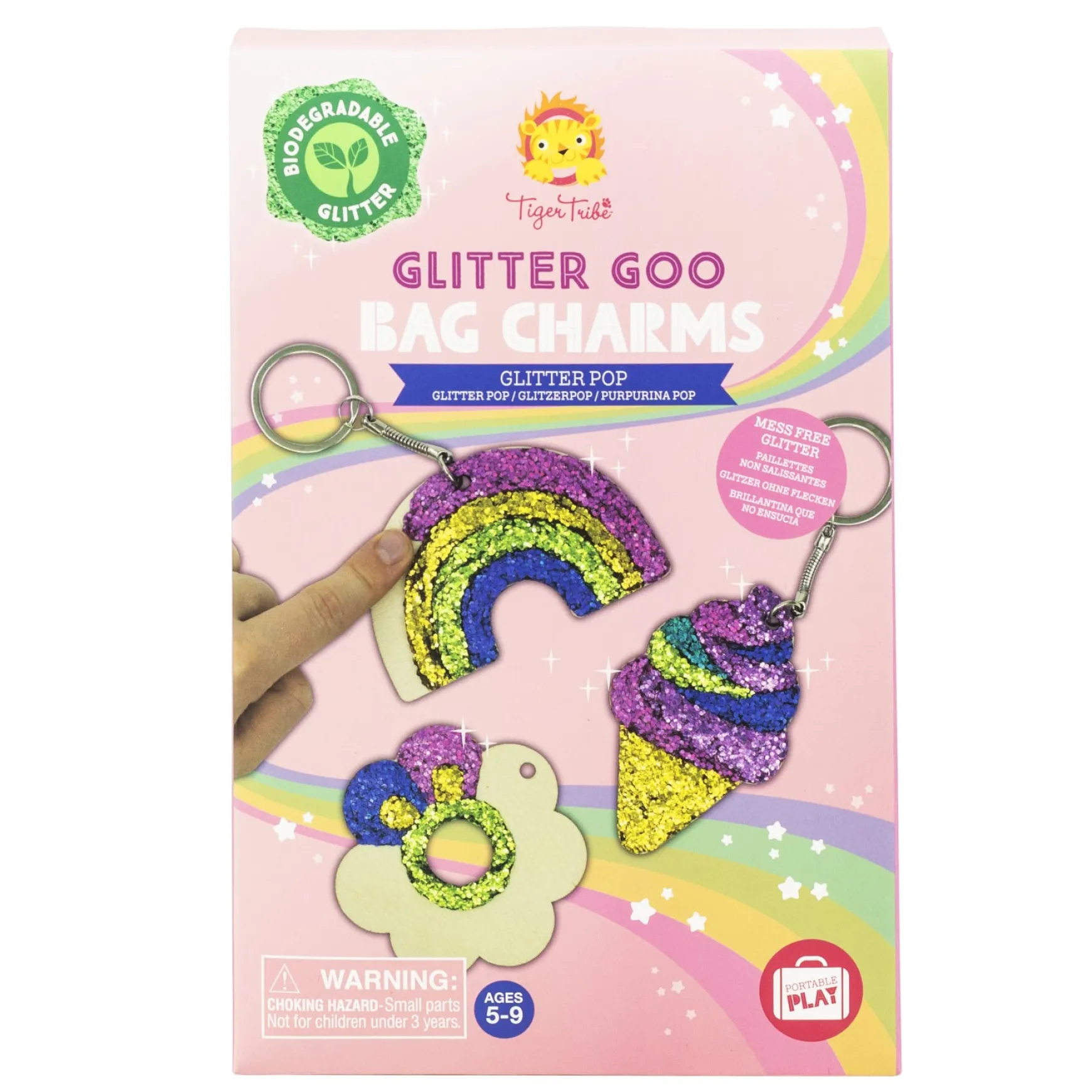 This clever craft kit contains everything kids need to decorate and assemble their own colourful, glittery bag charms – with five wooden charms (in different fun shapes) and a vibrantly coloured set of our amazing mess free Glitter Goo (it’s pixie dust without the fuss) to level up the crafternoon.