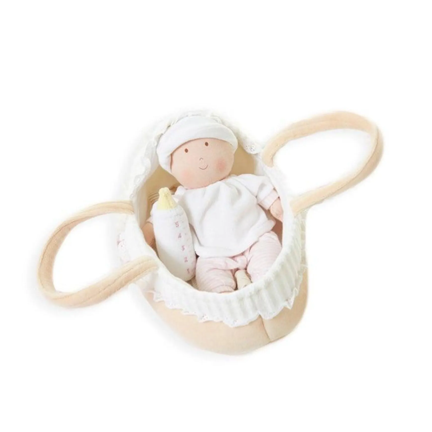 - 4 Piece Set: Baby Doll, Carry Cot, Blanket and Bottle