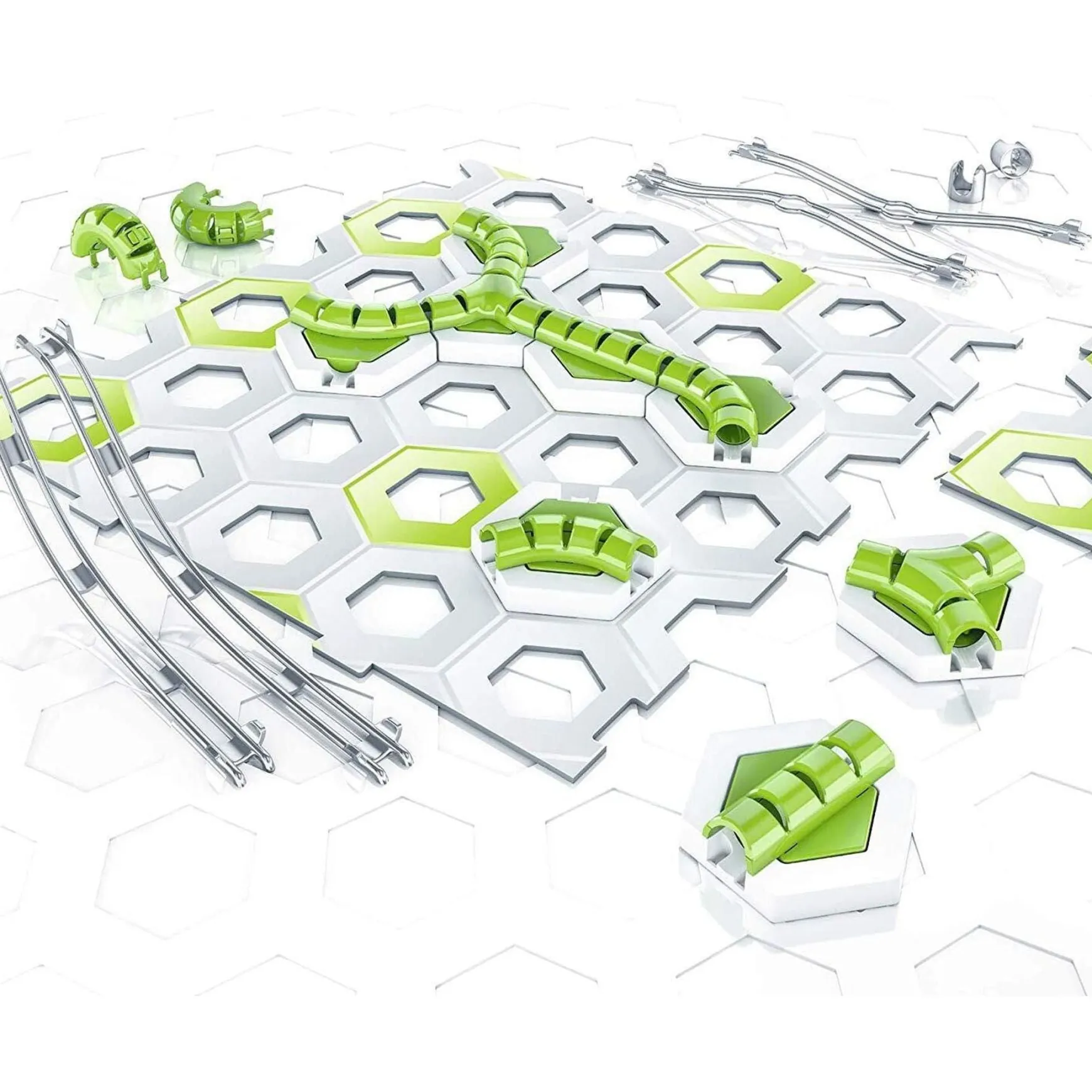 Includes 4 x tunnel curves, 2 x tunnel straight lines, 2 x tunnel switches. 2 x vertical U-turns, 2 x Bernoulli rails, 1 x O-rail upwards, 1 x O-rail downwards and 2 x catch baskets.