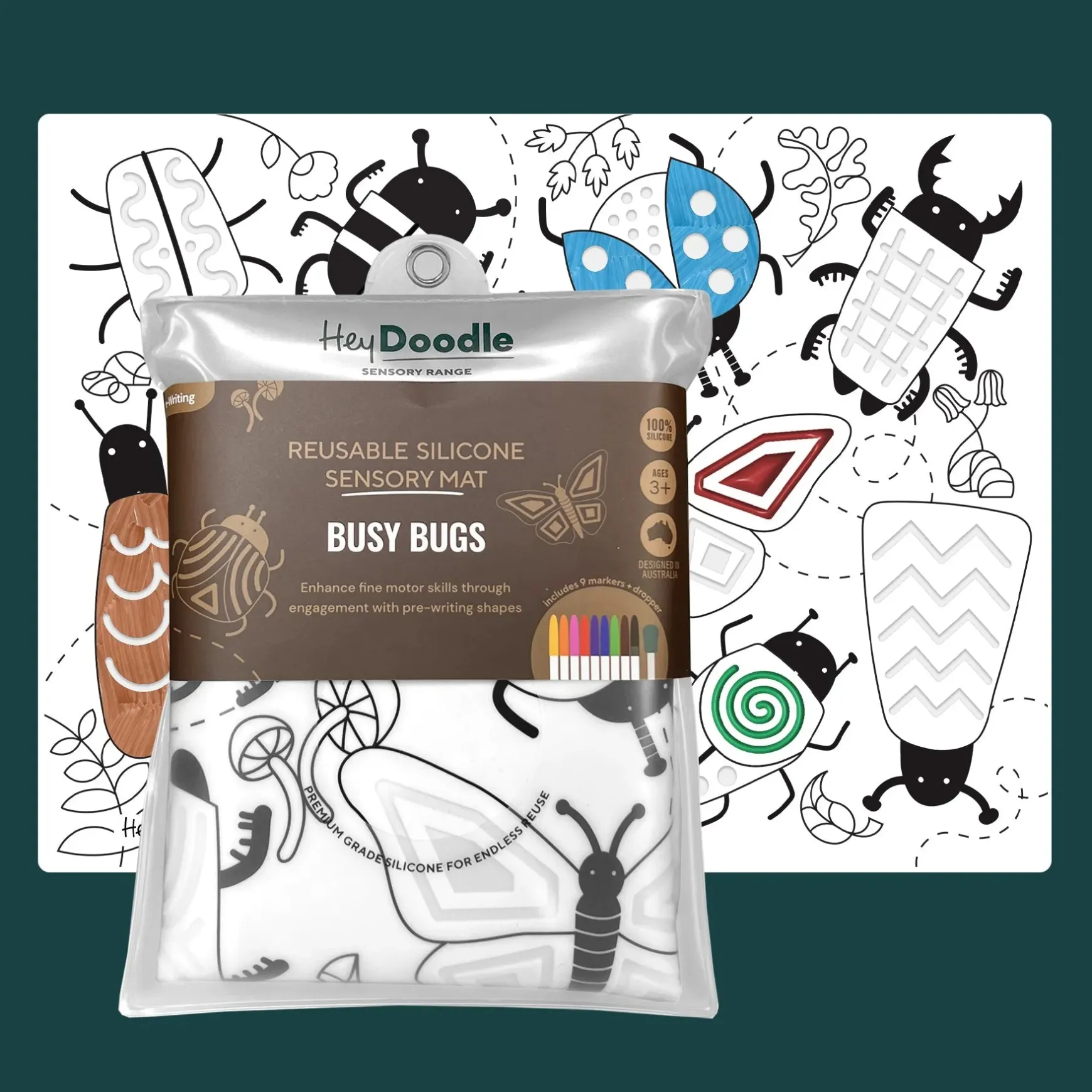 Busy Bugs is a new addition to our SENSORY MAT range! By adding a dropper, a whole new element of learning can be unlocked. It will enhance your child’s fine motor skills whilst immersing them in a sensory experience!