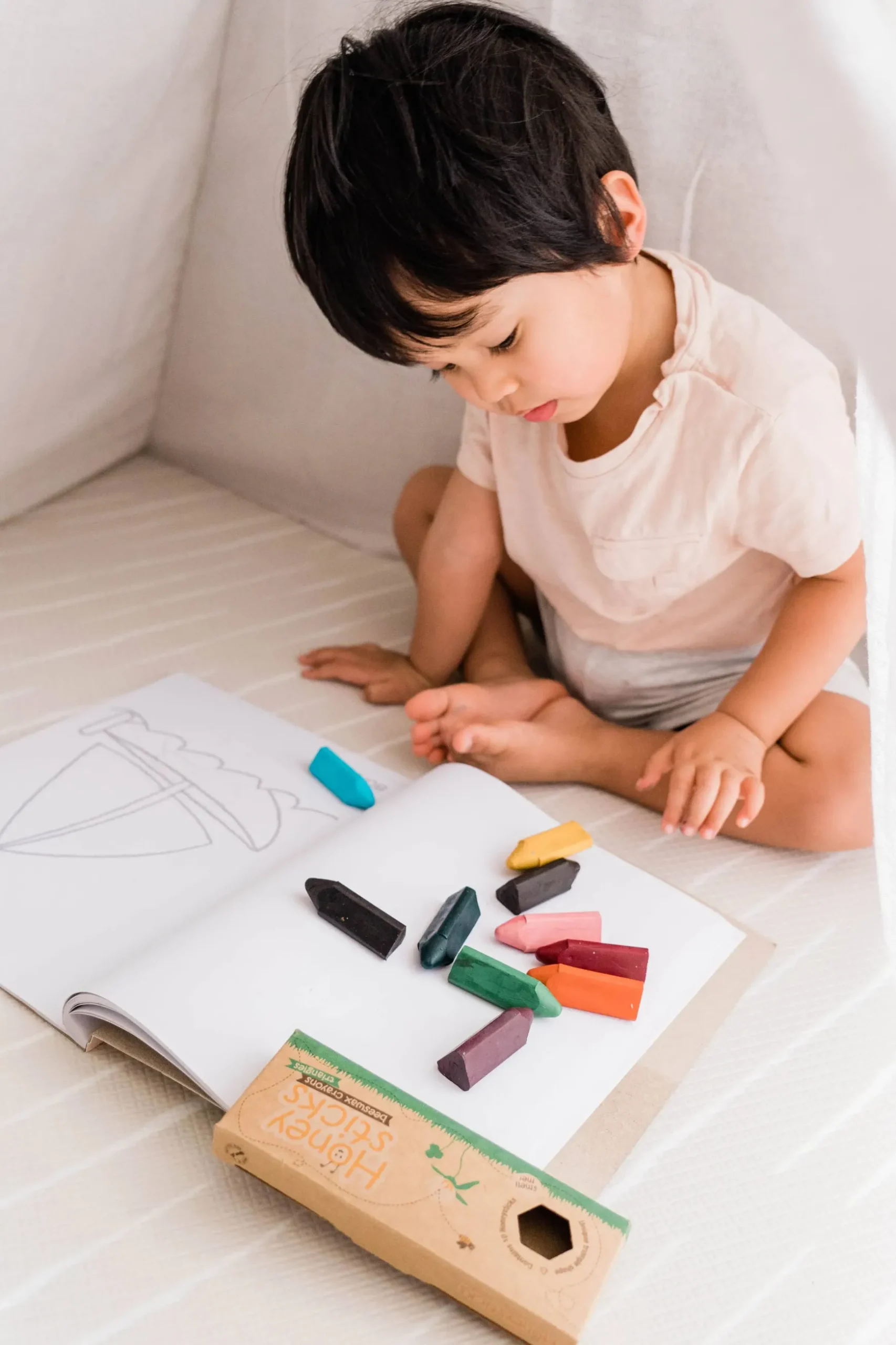 Honeysticks Triangles are the perfect first crayon for toddlers! With a unique chunky triangular shape, these natural beeswax crayons are designed for little hands, making them easy to grip while preventing them from rolling away. Safe, durable, and made from natural materials, Honeysticks Triangles encourage creativity and fine motor skill development, offering a fun and eco-friendly way for toddlers to explore drawing and coloring.