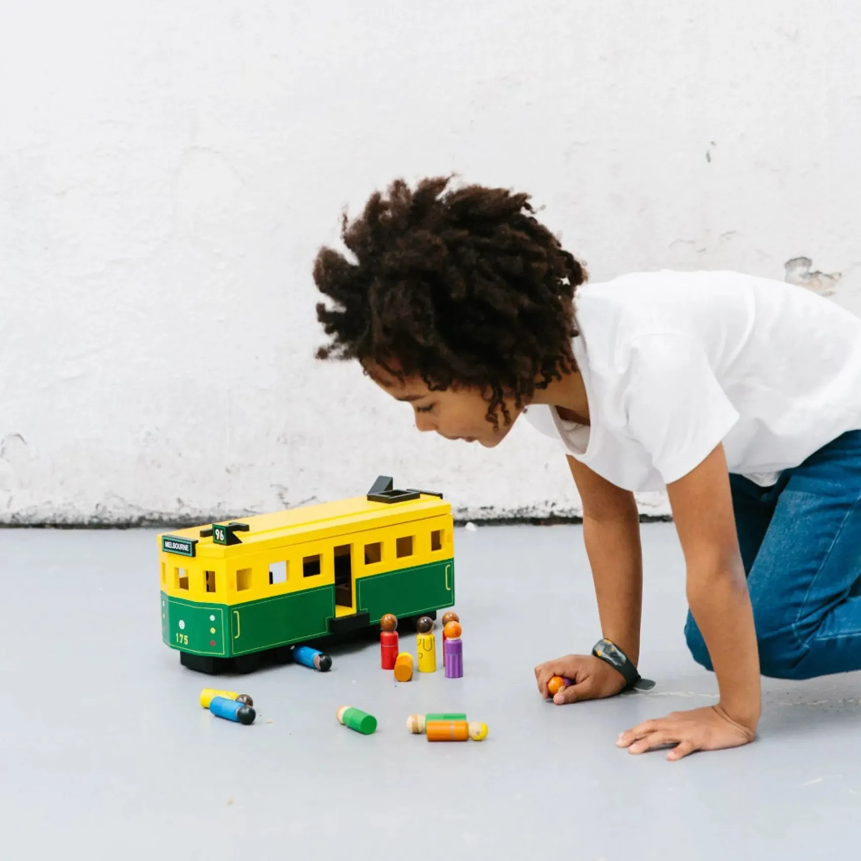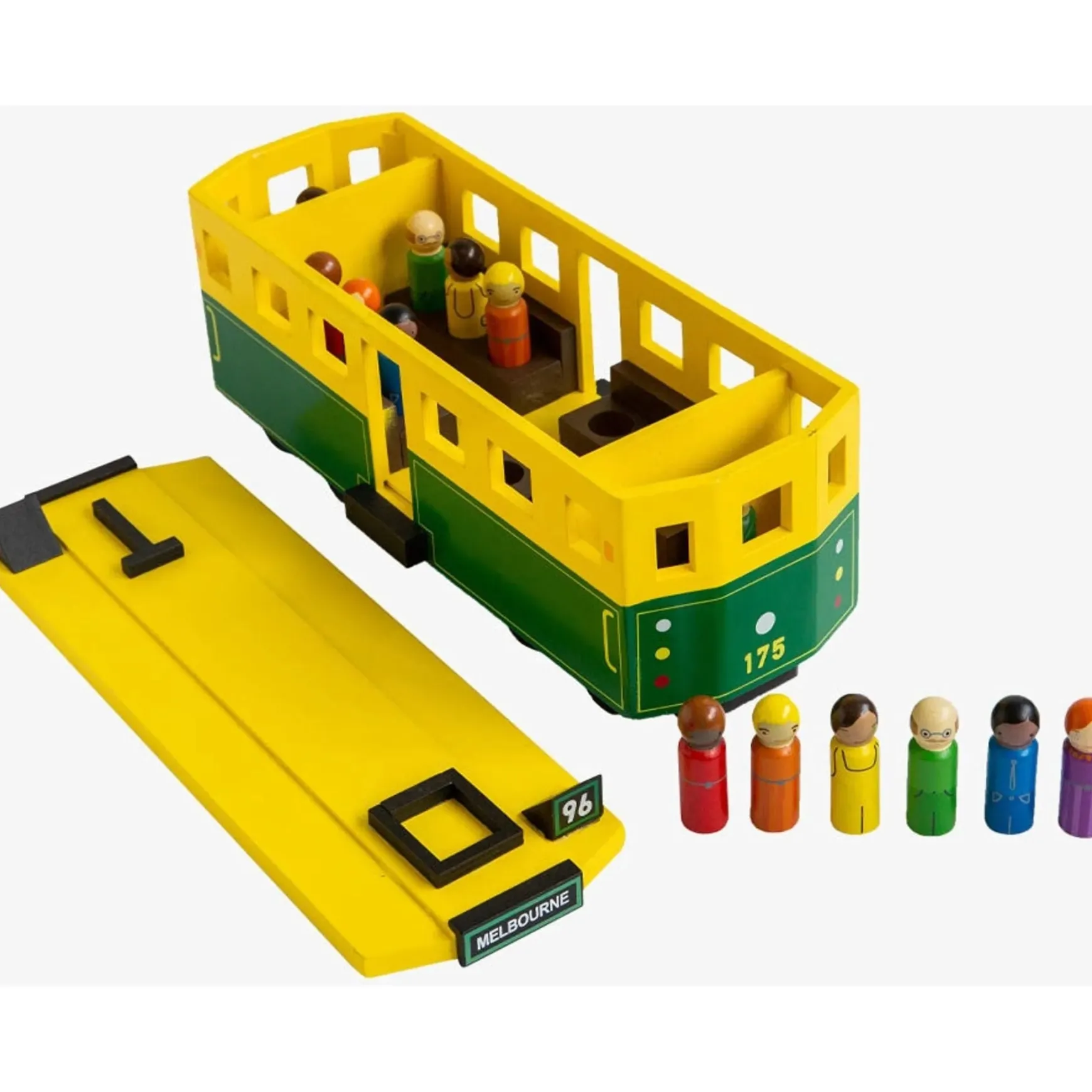 Complete with 12 wooden passengers and 2 wooden tram conductors for pretend play