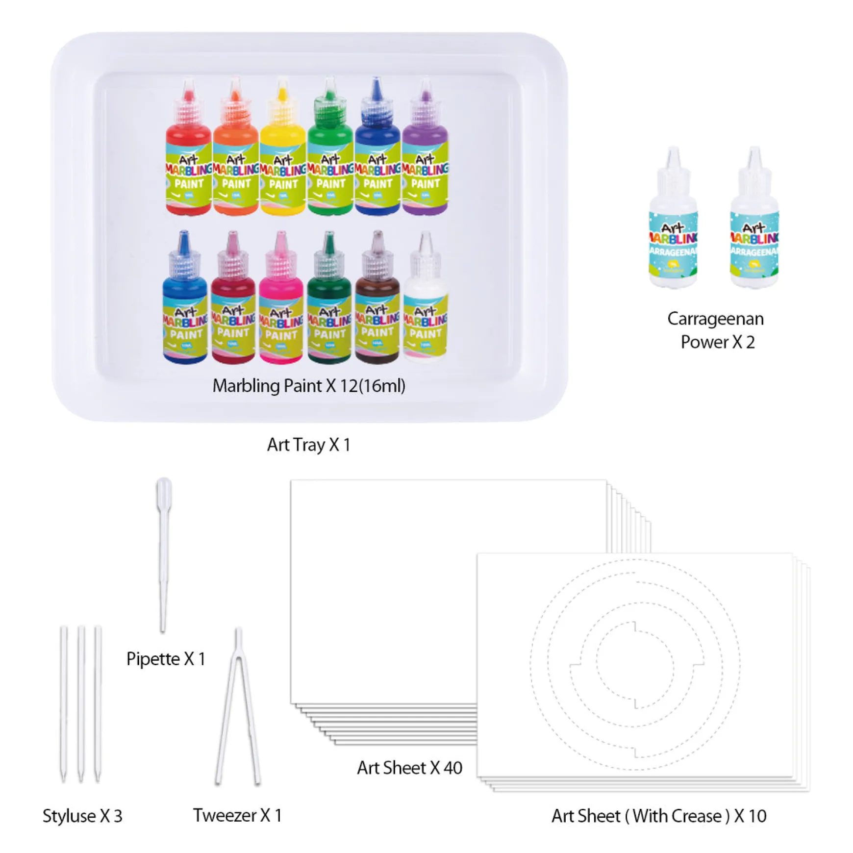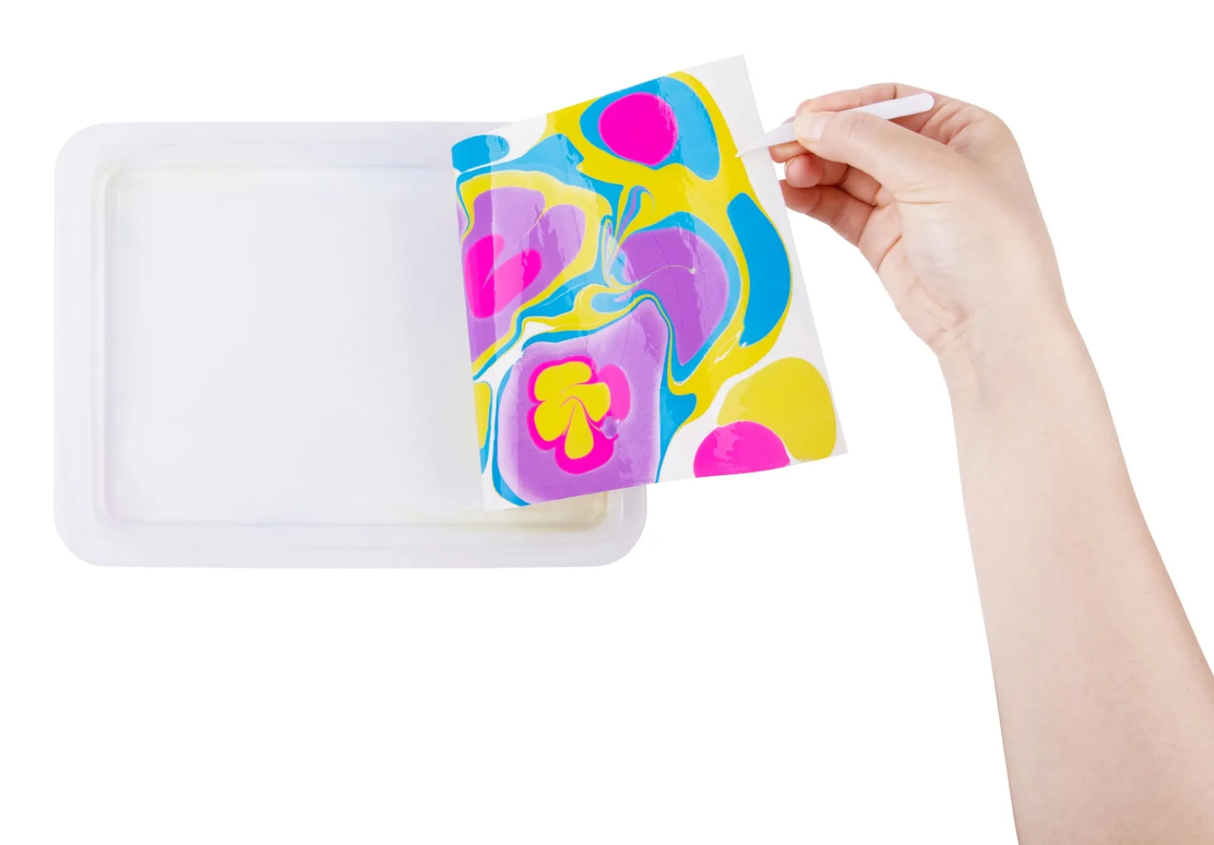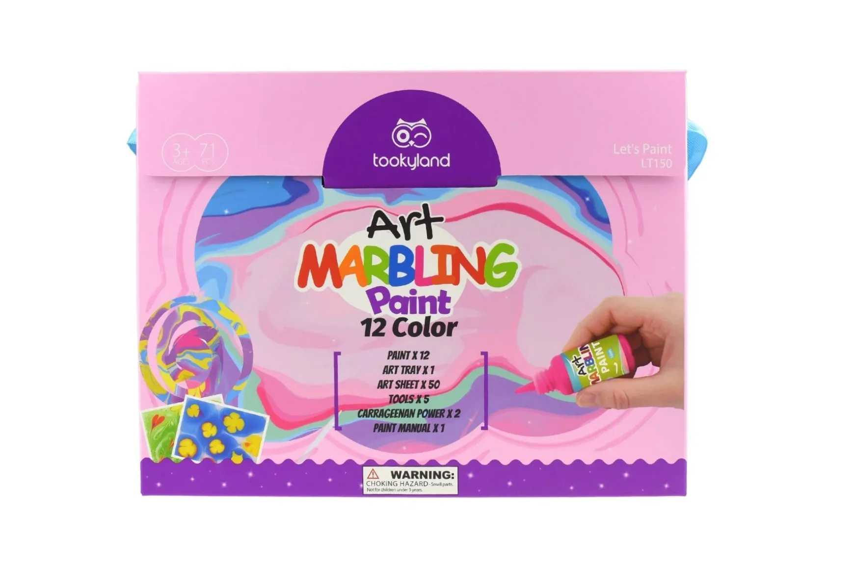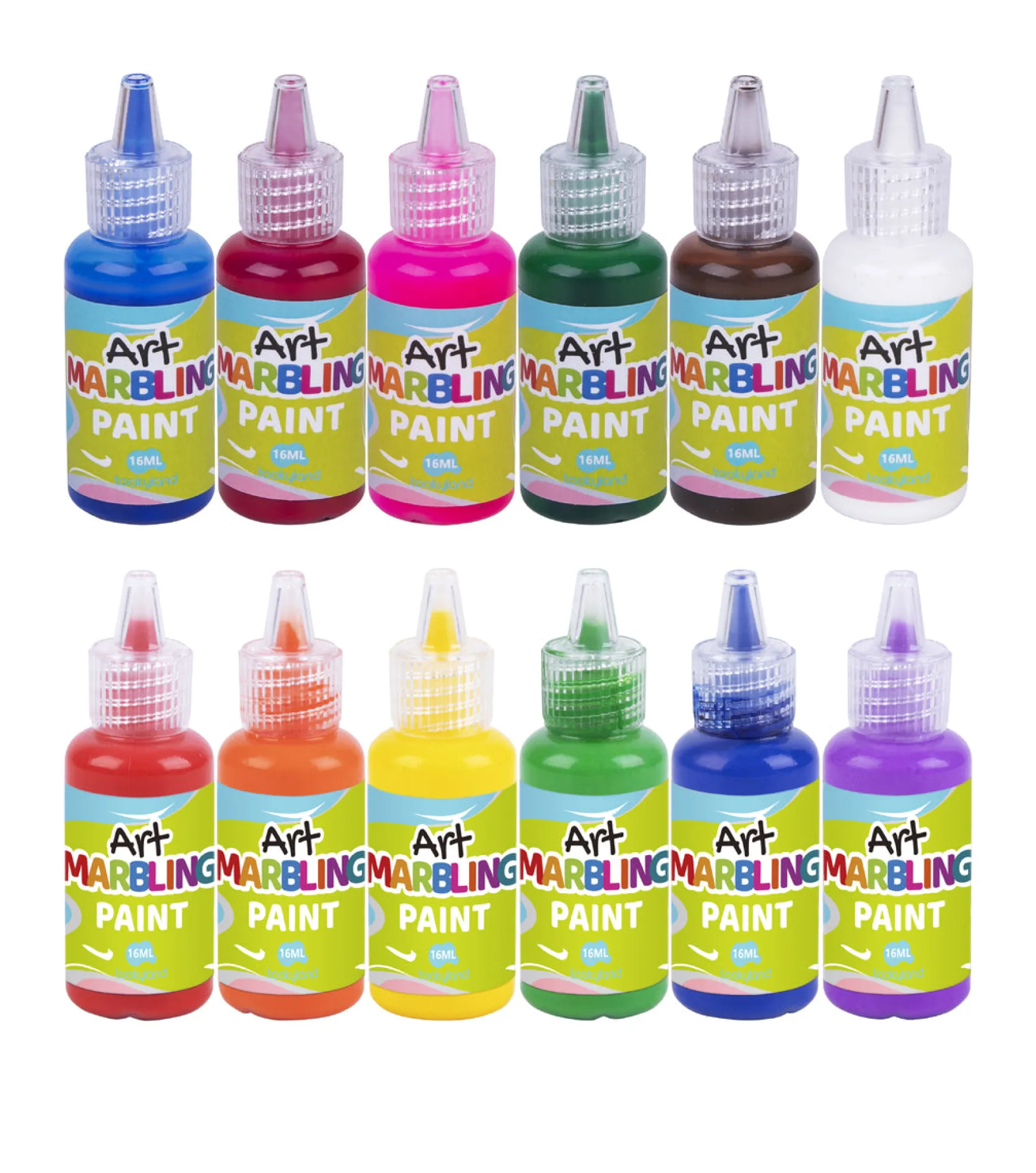 Unleash your creativity with the Marbling Paint Kit – 12 Colours by Tookyland! This all-inclusive craft set lets kids and adults alike explore the mesmerising art of marbling, creating one-of-a-kind designs on paper. Simply fill the included tray with water and the special solution, add droplets of vibrant marbling paint, and swirl to craft hypnotic, psychedelic patterns. Transfer your design onto paper and watch your artistic masterpiece come to life!
