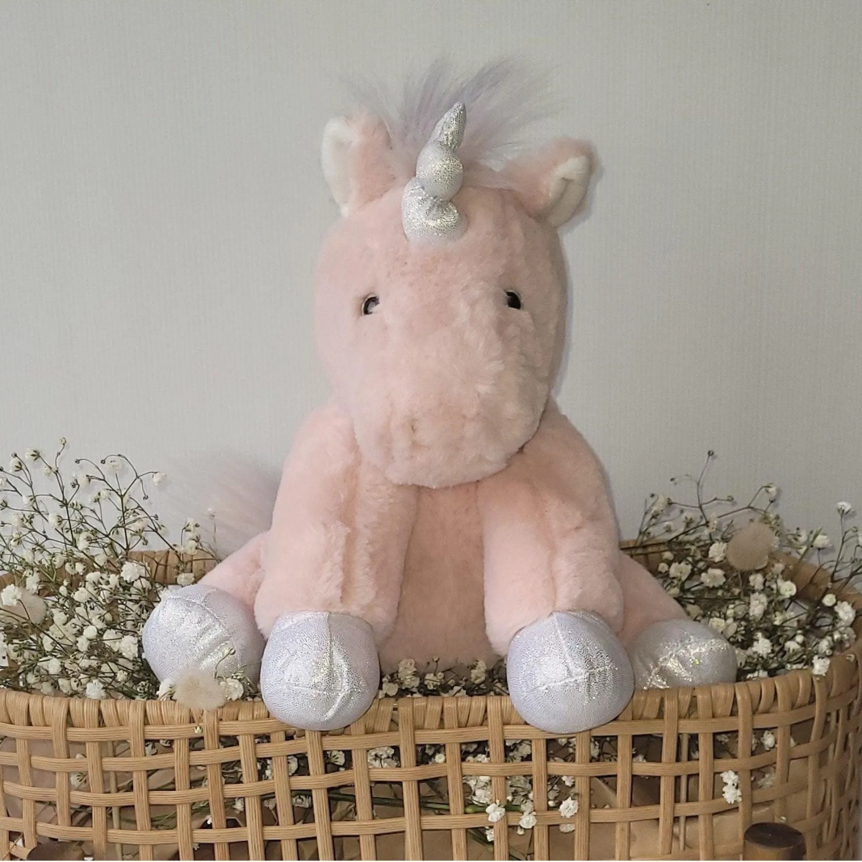 This cute plush toy is super soft and destined to become a child’s favourite toy for years to come. Featuring a gorgeous rainbow tail and mane and glitter fabric feet u0026amp; horn.