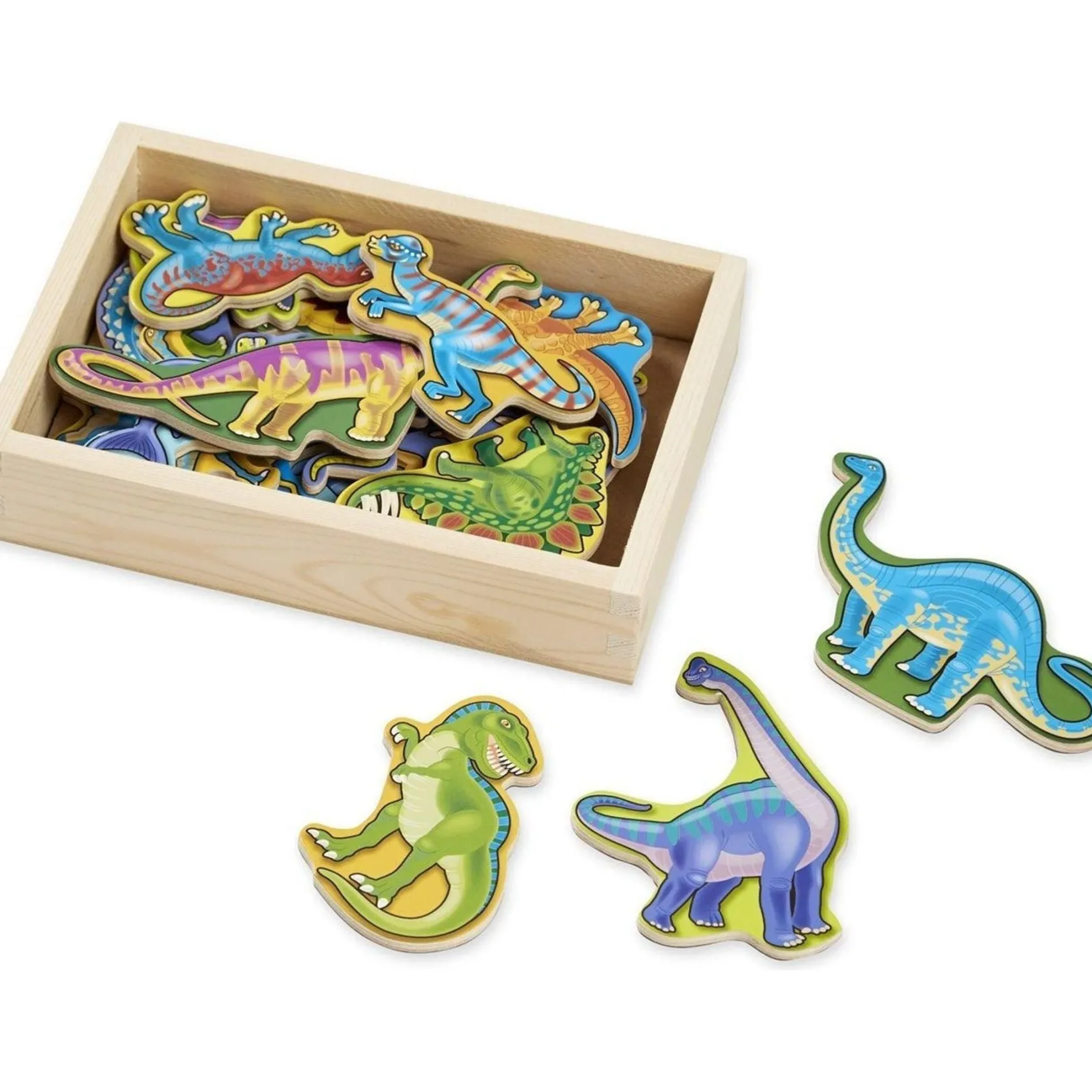 20 magnetic dinosaurs eager to play in the twenty-first century! Bright colours add excitement to this dino collection, contained in a convenient wooden case.