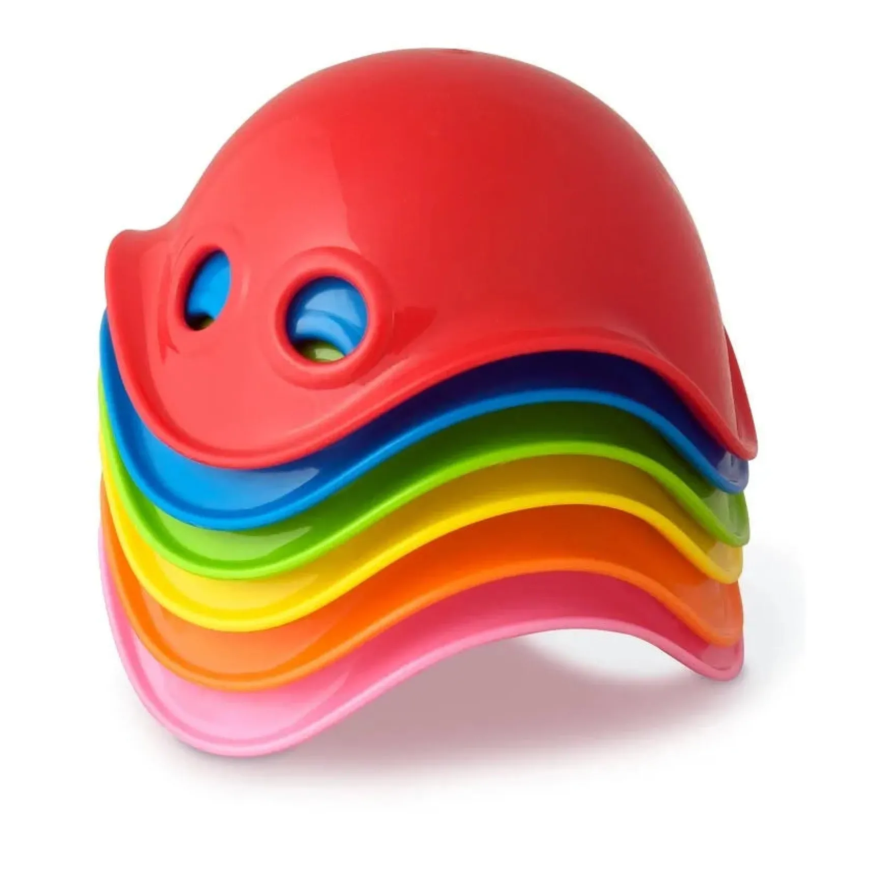 Now comes the perfect accessory for the Bilibo – call it the little brother/sister or baby-Bilibo however you see, like it, feel it. Comes in gift pack of six mini Bilibos. It can be a racing beetle, a spinning top, a boat in the tide of a bath tub, a treasure trove, a game piece, a sliding puck, an exotic shell, a designer’s seat for a doll. The junior version of the award-winning Bilibo easily matches its big sibling’s versatility. In the hands of children, the colourful shells trigger new ideas and turn into anything and everything imaginable. Made from durable food grade HD-PE, non-toxic, shock and fade resistant, 100% recyclable.
