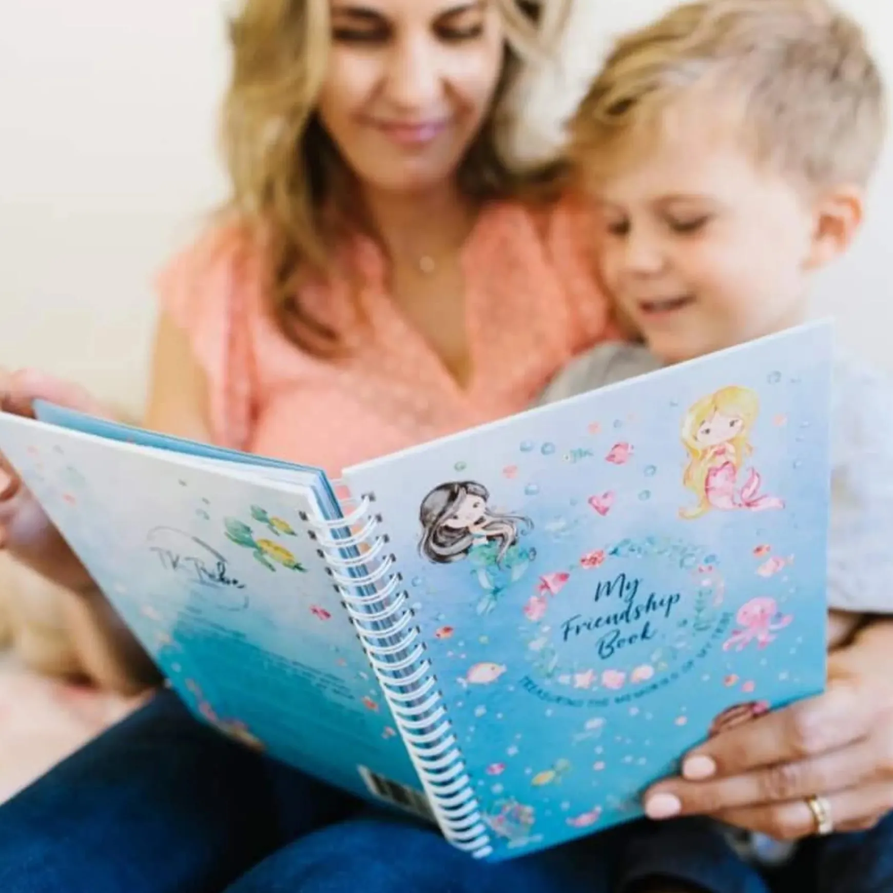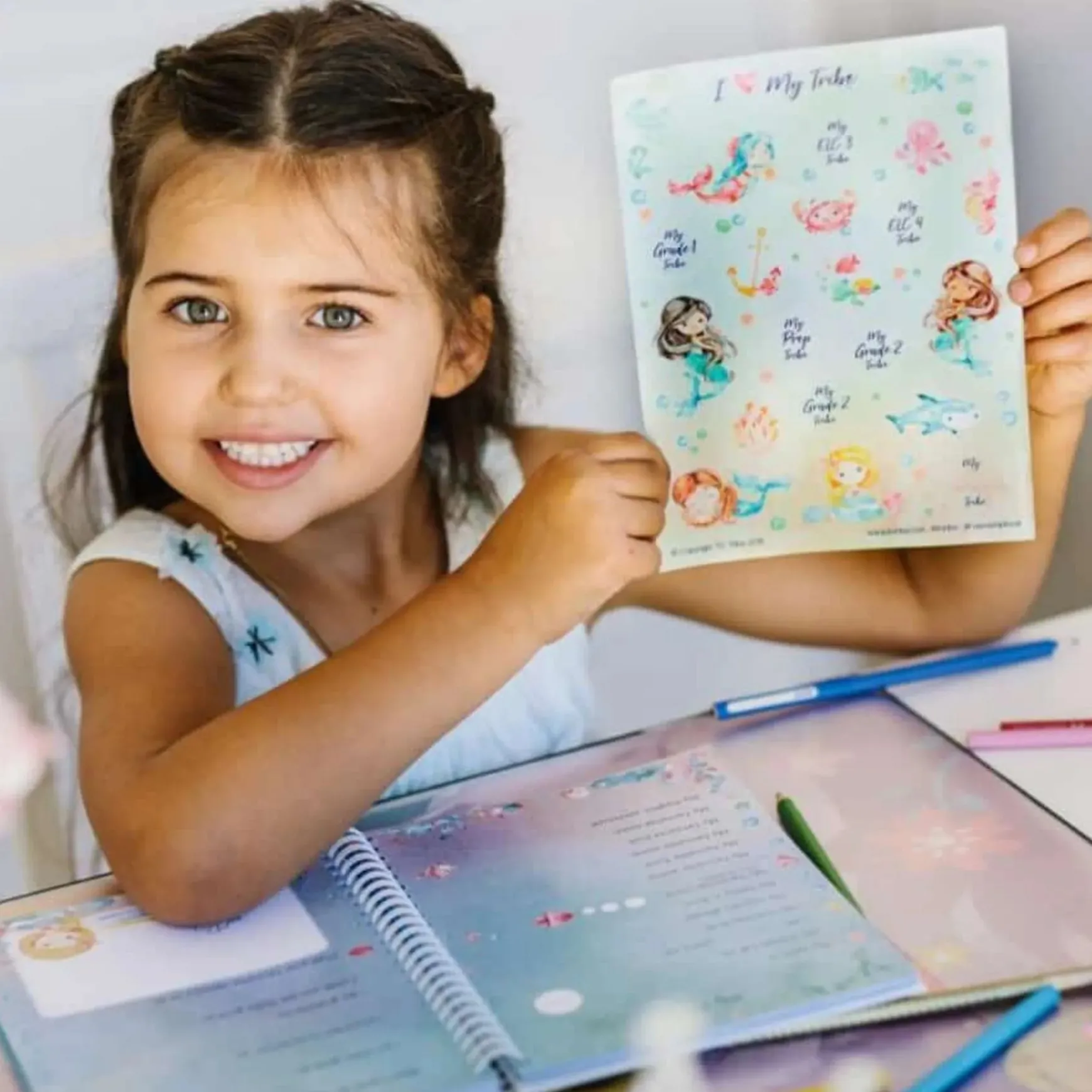 This set includes the mermaid-themed Friendship Book (A5 size) and sticker sheet, designed and printed in Melbourne, Australia.