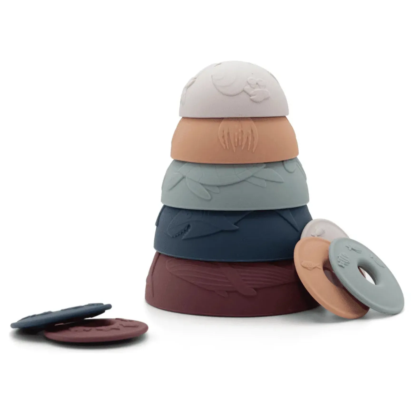 Ocean Stacking Cups can be cleaned using a steriliser, placed in a dishwasher, or washed with warm soapy water. Freezer safe and dishwasher safe.