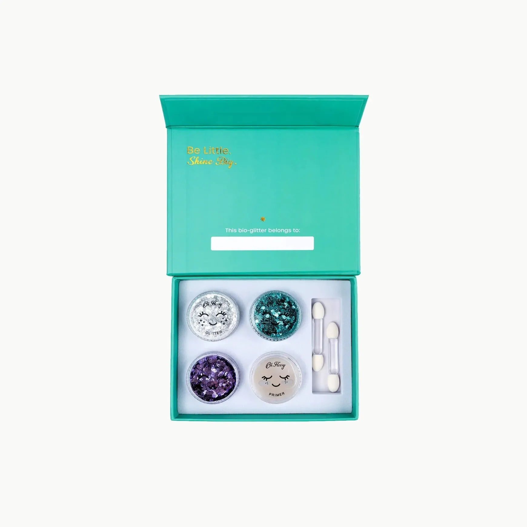 Dive into the marvelous underwater world with Oh Flossy’s Under the Sea Glitter Set! This whimsical collection allows your inner mermaid to shine, adding a touch of ocean-inspired shimmer to your looks for an enchanting, aquatic glam. Simply apply the loose glitter to your face, hair, nails, or body using the natural primer. But don’t limit yourself to just makeup – get creative and incorporate the eco-friendly Bio-glitter into arts and crafts or play dough and slime! The possibilities are endless with this set that includes 3 Biodegradable Glitter mixes (Violet, Mint, and Holographic) and 2 applicators. Always keep adult supervision close by.