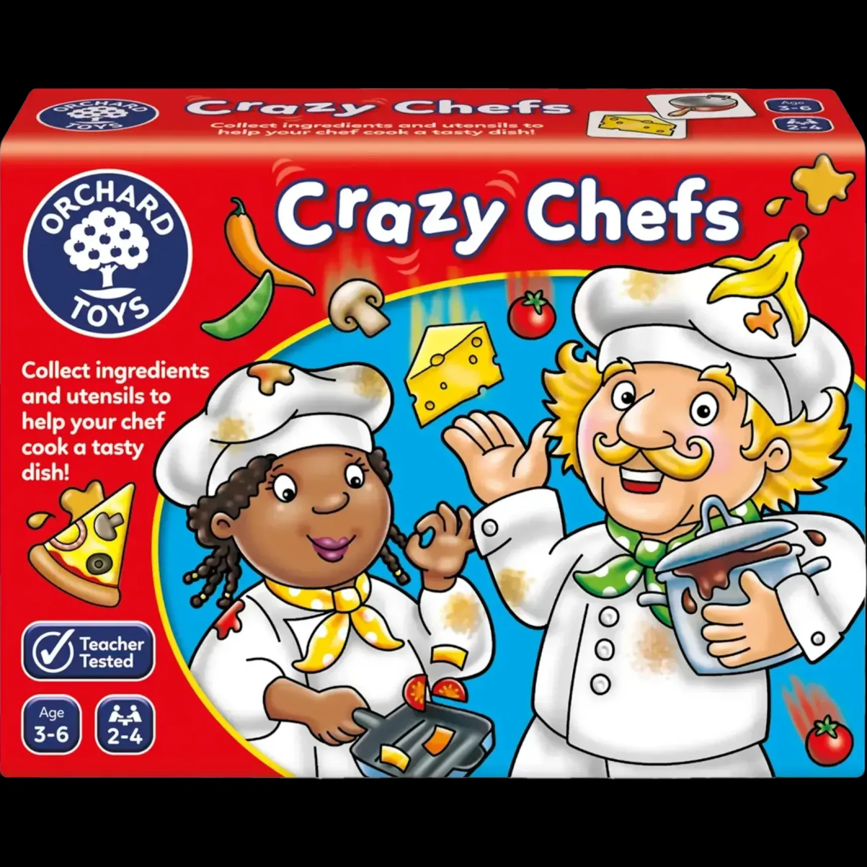 The game can be used to get children interested in cooking by talking about the different ingredients and utensils, as well as foods from around the world. The addition of the spinner turns Crazy Chefs into a game of chance to see who will cook their meal first!