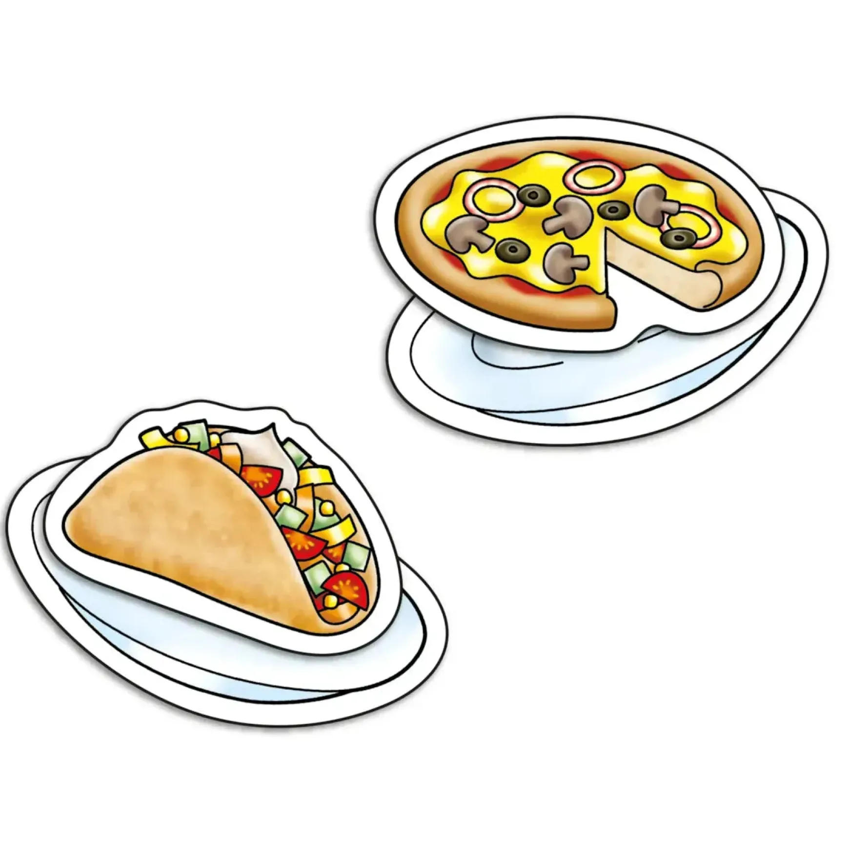 In this fun food-themed game, each player picks a chef board with a different recipe – from tacos to pizza – and matches the ingredient cards to their board. They must then spin the spinner to get their plate and wait for their meal to cook! Who will be the first to serve up a tasty treat?