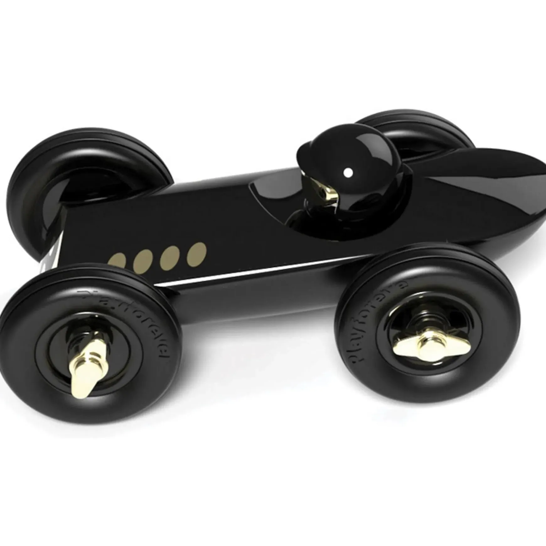 Vince is mysterious and cool as a cucumber. All black with hints of gold, he has soft rubber tyres to ensure he will start the race smoothly and quickly. The original Rufus was specially designed in the UK for Hugo Boss and then expanded into it’s own range under the Playforever banner. Made from heavy duty plastic, Playforever cars are solidly contructed in chic nostalgic styles and look just as good on the shelf as they do at play. Just one of several in the Rufus range of midi cars to choose from.