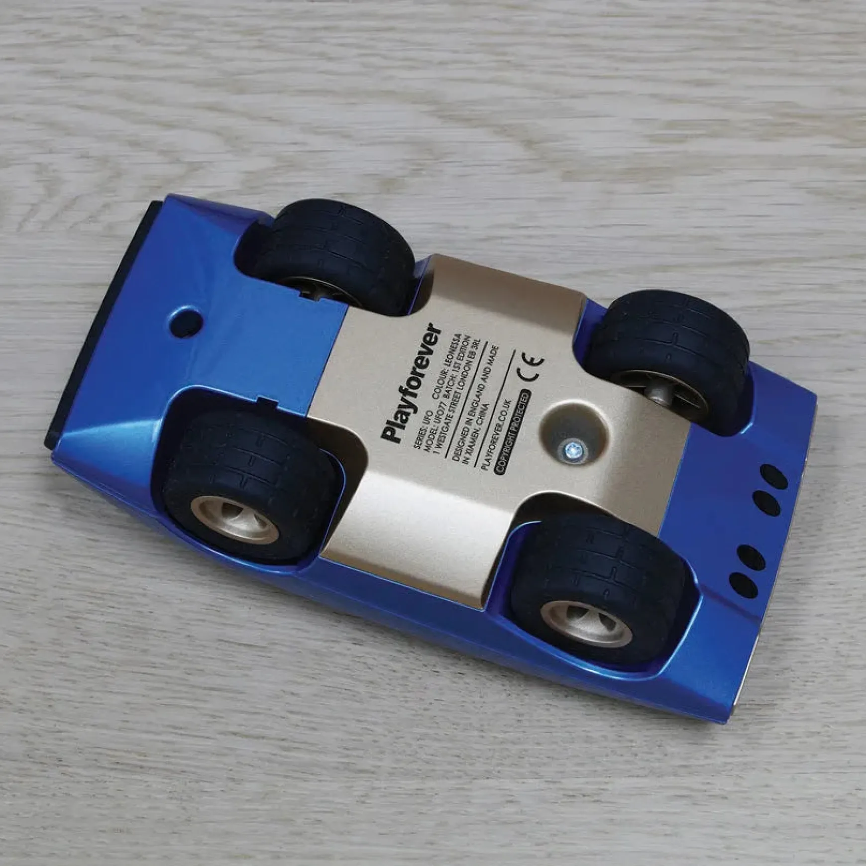 Prepare to embark on a thrilling journey through time and space with UFO Leonessa! Based on 1970’s concept cars which were wedges on wheels consisting of all angles and edges! The metallic blue body with champagne gold wheels and detail, give it a striking space age appearance. You could be mistaken for thinking it is straight out of the future. Made from high quality, robust ABS Plastic with a high gloss UV coating which has been hand-polished with care, it has a flawless finish that is sure to impress lovers of popular culture and futuristic design. Play it or display it – you decide!