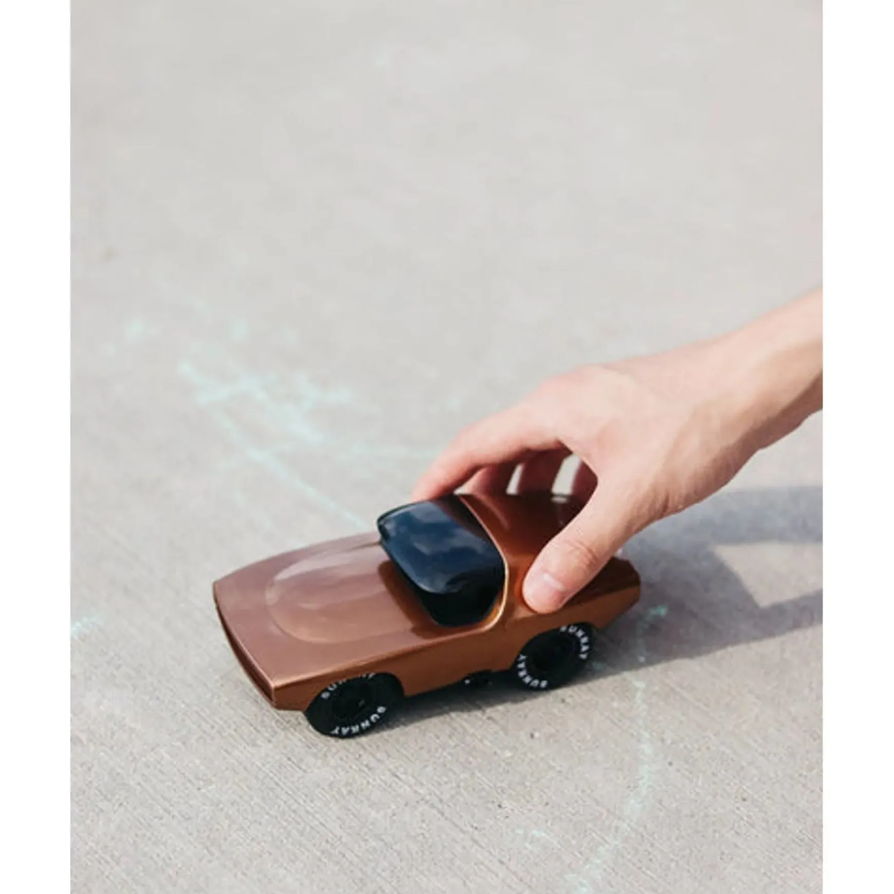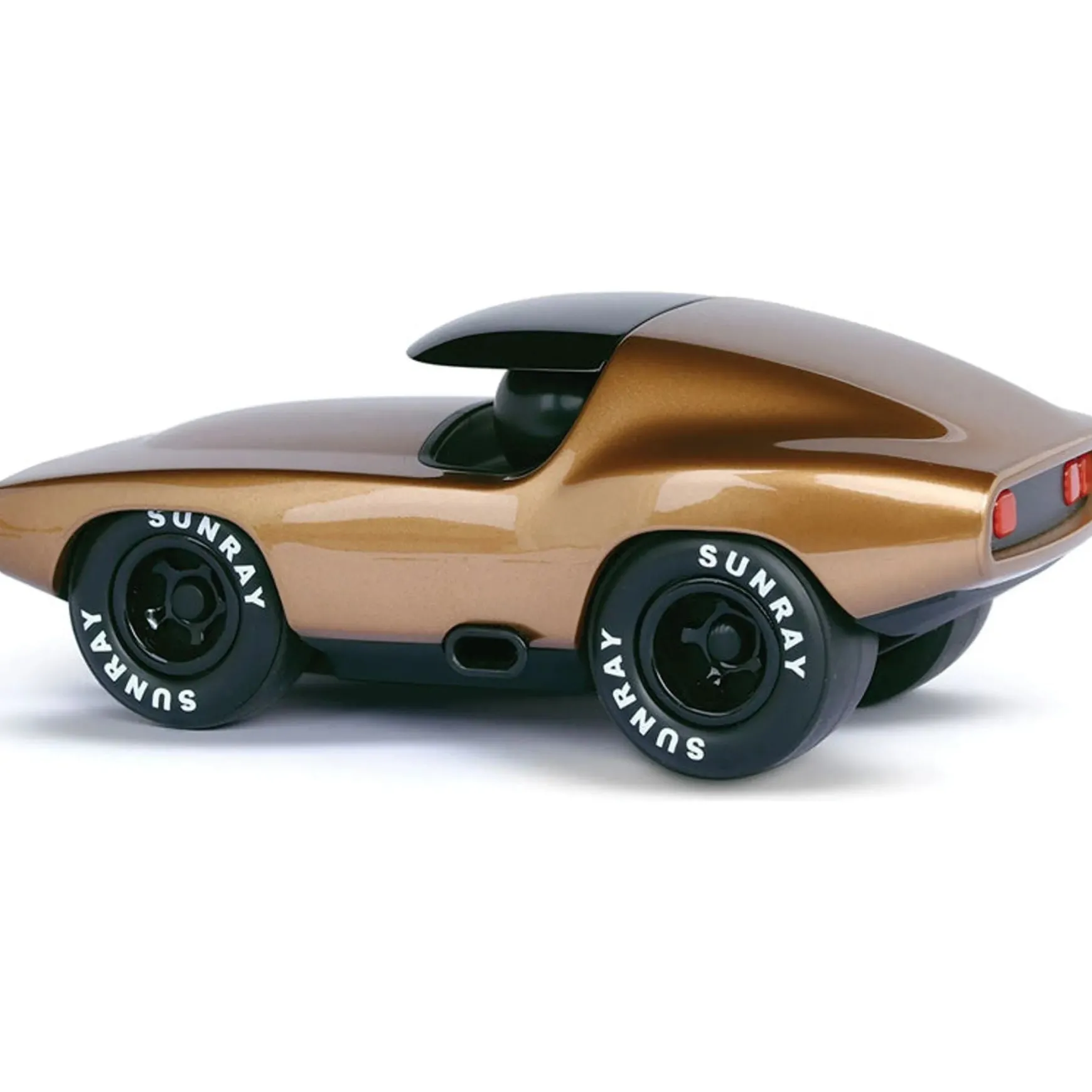 Reminiscent of a classic fastback car, the sleek aerodynamic lines and burnished gold paint will make the owner of the Verve Lead Belly Burnside the envy of everyone in the street! Constructed from heavy duty plastic with moving rubber wheels rimmed with gold and designed in the UK, Burnside is shimmering gold all over with a black roof and bumper. Solidly built for everyday play, Burnside is perfect for the playroom or on a shelf as stylish room decor. Car enthusiasts will love him too as the Playforever range always has a flawless finish in UV-resistant paint and is crafted with attention to detail.